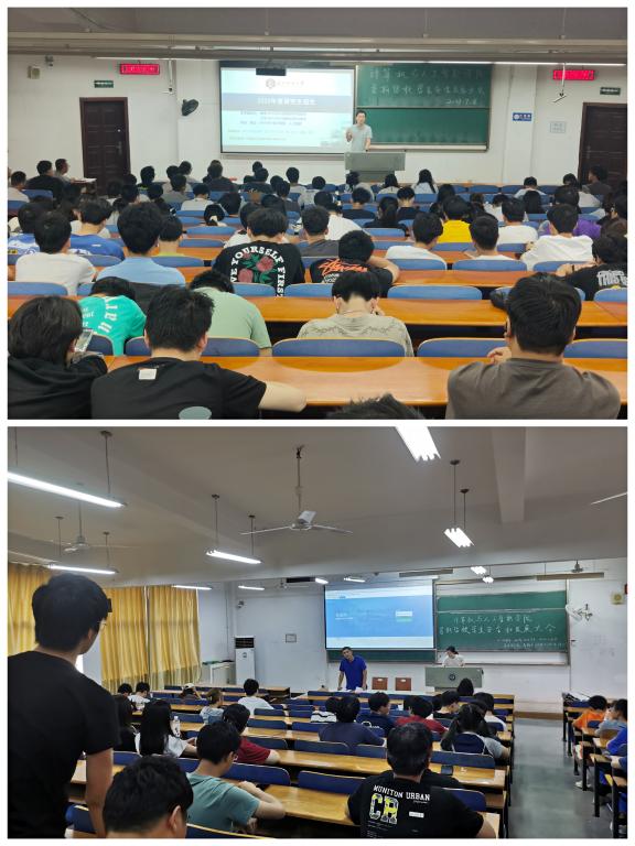 会上,马绪亮以“你我携手,共筑平安校园”为题开展了安全教育讲座,他从“安全”的定义引出以人为本、生命至上的深刻意蕴,结合数据和案例生动地阐述了提高安全防范意识的重要性。分别从暑期季节性安全防范、交通安全、财产安全、消防安全、实验室安全、饮食安全、宿舍安全、政治安全八个方面全方位、多方面开展了深度安全教育讲座。并温馨提示学生就医、心理援助、保卫救助、值班服务的联系方式和途径,畅通学生寻求帮助的渠道,给予学生全方位的关心关爱。孙杰就大学生创新创业和科技竞赛进行了详细解读。他结合学生手册,从大学生创新创业、参加学科竞赛与综合测评的关系、与奖学金的评审、与评优评先和学位补授的关系进行了深刻地阐述,并分类介绍了各类赛事,鼓励同学们踊跃参加到各类赛事中来。