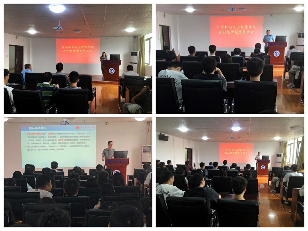 为欢迎2023级研究生新生入学,帮助学生尽快适应研究生学习生活,明确学习目标和规划,计算机与人工智能学院于9月13日举行新生见面会暨双选会。学院院长胡新荣、党委书记晏伟、党委副书记向涛、研究生教学秘书罗园参加会议,会议由副院长彭涛主持。