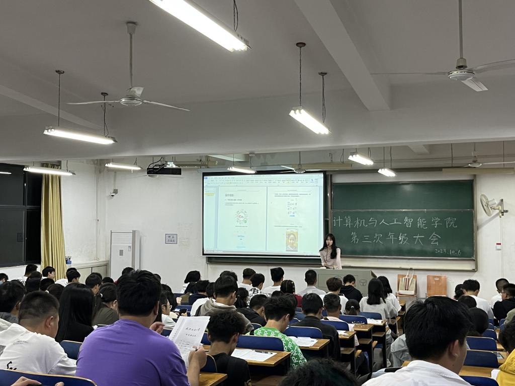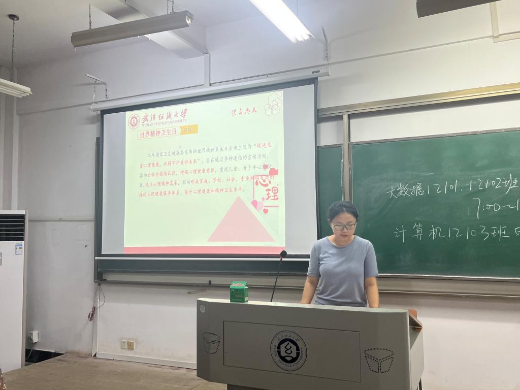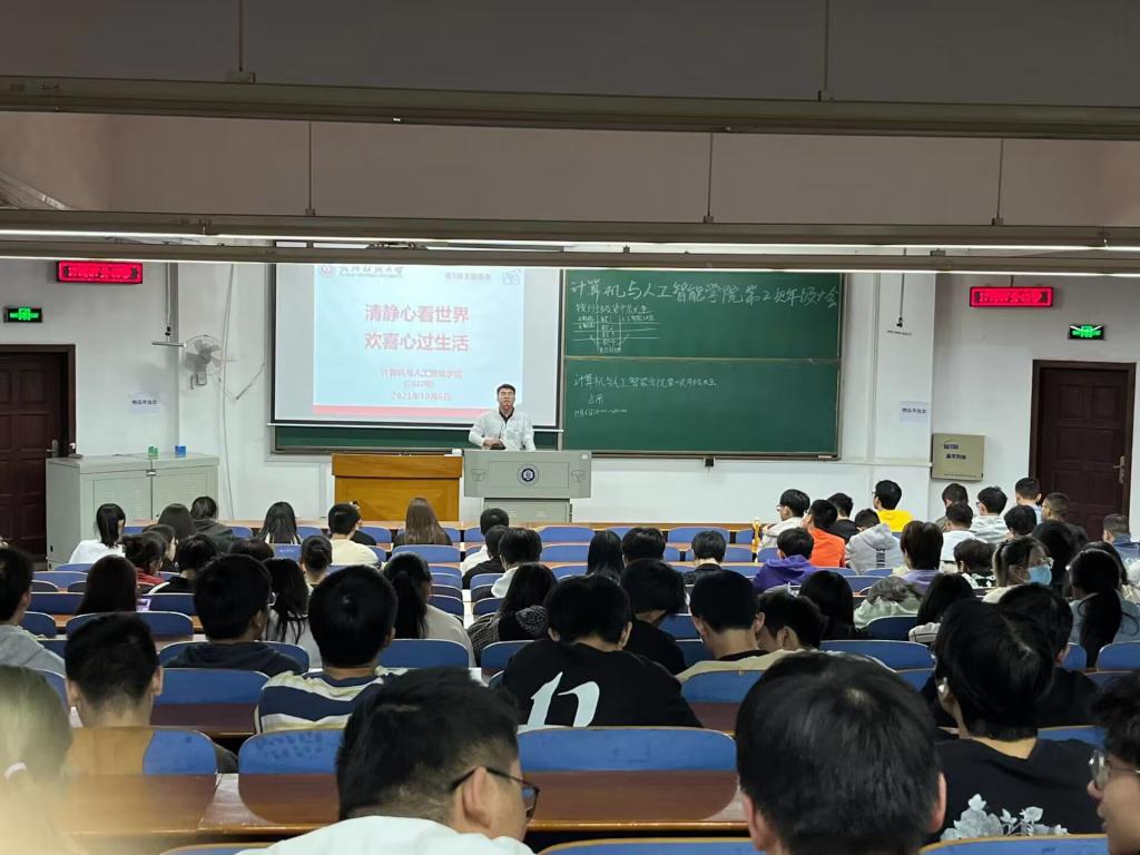 为增强全体学生心理健康意识,计算机与人工智能学院于10月6日晚召开主题教育班会,带领同学们了解“世界精神卫生日”系列活动的相关信息和通知要求,动员学生积极参与系列活动。本次班会由班主任、辅导员、全体学生共同参与。