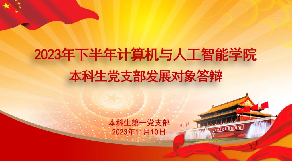 新思想引领新时代,新征程呼唤新担当。为进一步贯彻落实《中国共产党发展党员工作细则》相关规定,根据“控制总量、优化结构、提高质量、发挥作用”的总要求,全面考察学生发展对象的综合素质,保证新发展党员的质量,同时加强学院对本期拟发展预备对象的了解、教育及培养,计算机与人工智能学院各学生党支部于10月9日在“一站式服务驿站”、三号教学楼分别进行了发展对象候选人答辩会。学生支部书记、委员及50位入党积极分子参加了此次会议。