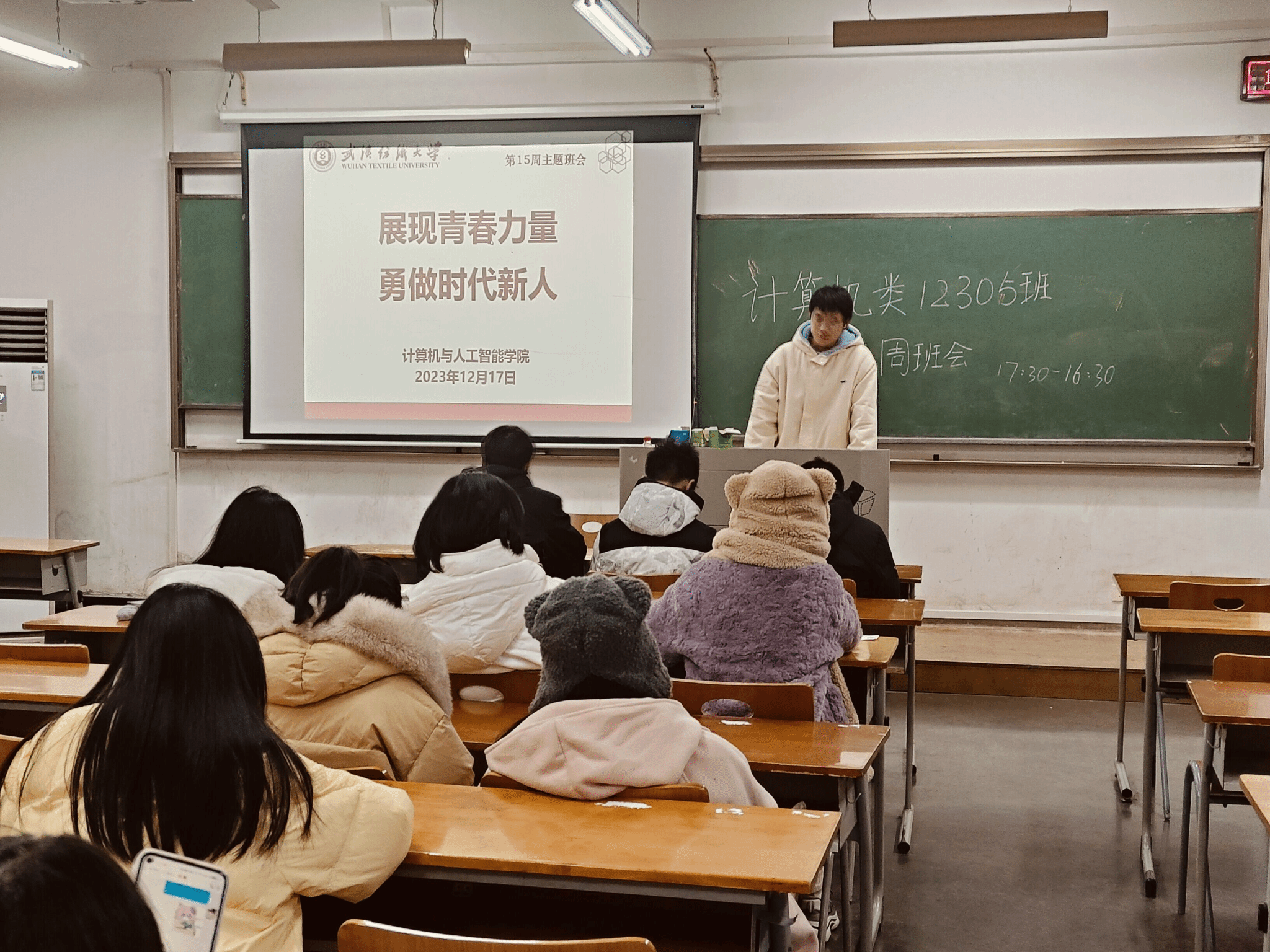 为引导同学们向先进集体和优秀学生学习,计算机与人工智能学院于12月17日晚召开展现青春力量,勇做时代新人主题班会。全体班主任、辅导员、各年级学生共同参与。