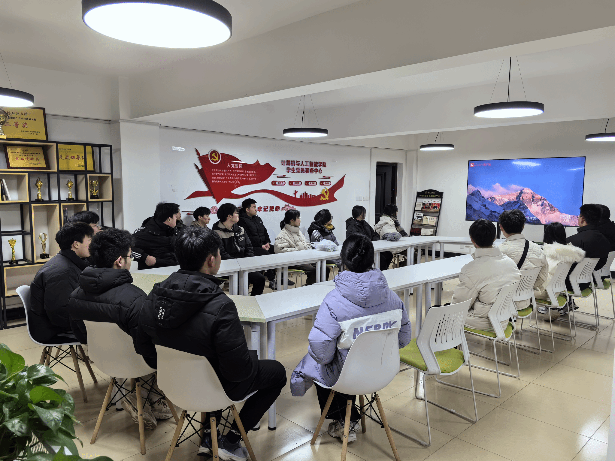 2月26日晚,计算机与人工智能学院组织学生在五栋宿舍“1024”学生成长服务驿站同上“为国攀登”思政大课。共同观看由中国科学院院士、中国地质大学(武汉)校长王焰新、地球科学学院教授宋海军、体育学院90后青年教师何鹏飞为大家讲述的征服珠峰的感人故事。