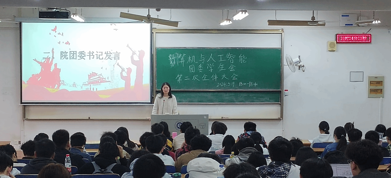 为加强学院团委学生会队伍建设,增强团委学生会成员的凝聚力,部署新学期学生会工作任务,计算机与人工智能学院团委学生会于3月21日在阳光校区03-118教室举行了第二次全体例会,学院团委书记喻仪、学生会指导老师易凡及全体学生会成员出席了本次会议,会议由秘书处付昌月同学主持。
