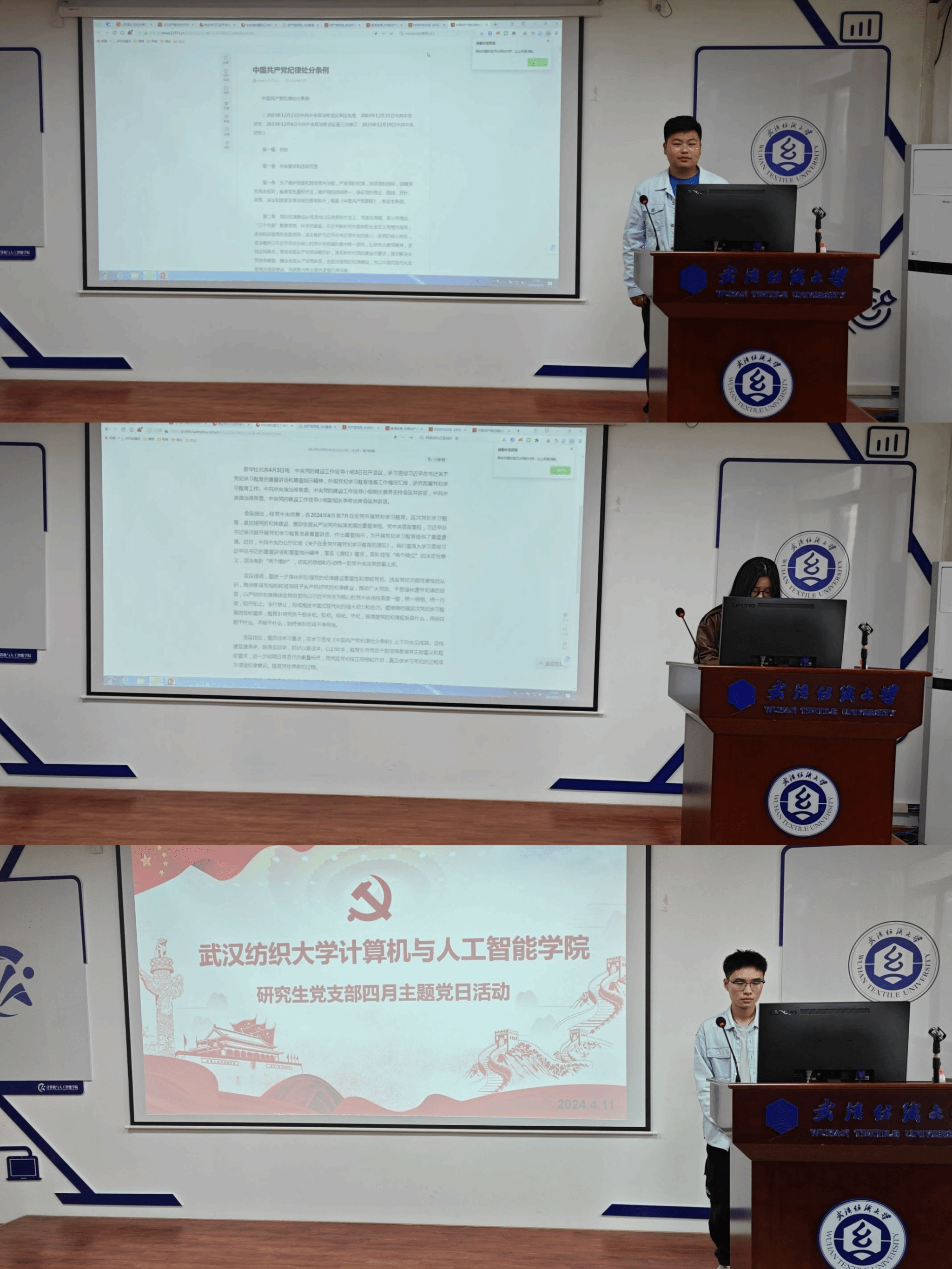 为深入学习贯彻党的二十大精神,进一步激励全体研究生党员以党的二十大精神为指引,4月11日下午,计算机与人工智能学院研究生党支部开展了四月主题党日活动。会议由郑思成同志主持,学院党委书记晏伟、辅导员余梦帆和全体研究生党员参加。