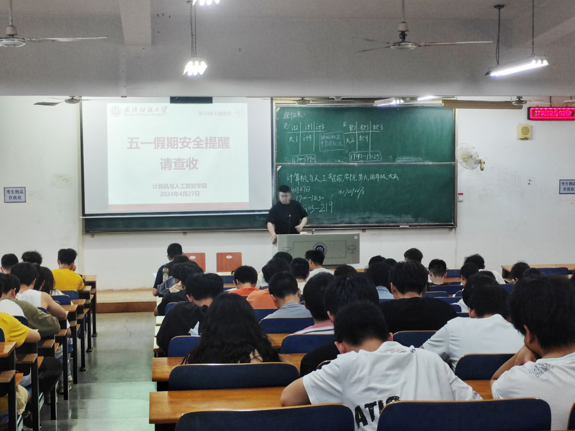 “五一”劳动节假期即将来临,为增强学生假期的安全意识,提高学生假期的自我防护能力,落实学校“五一”劳动节假期安全稳定工作的会议精神,4月27日,计算机与人工智能学院召开安全教育活动,学院党委副书记向涛、全体辅导员及全体学生参会。