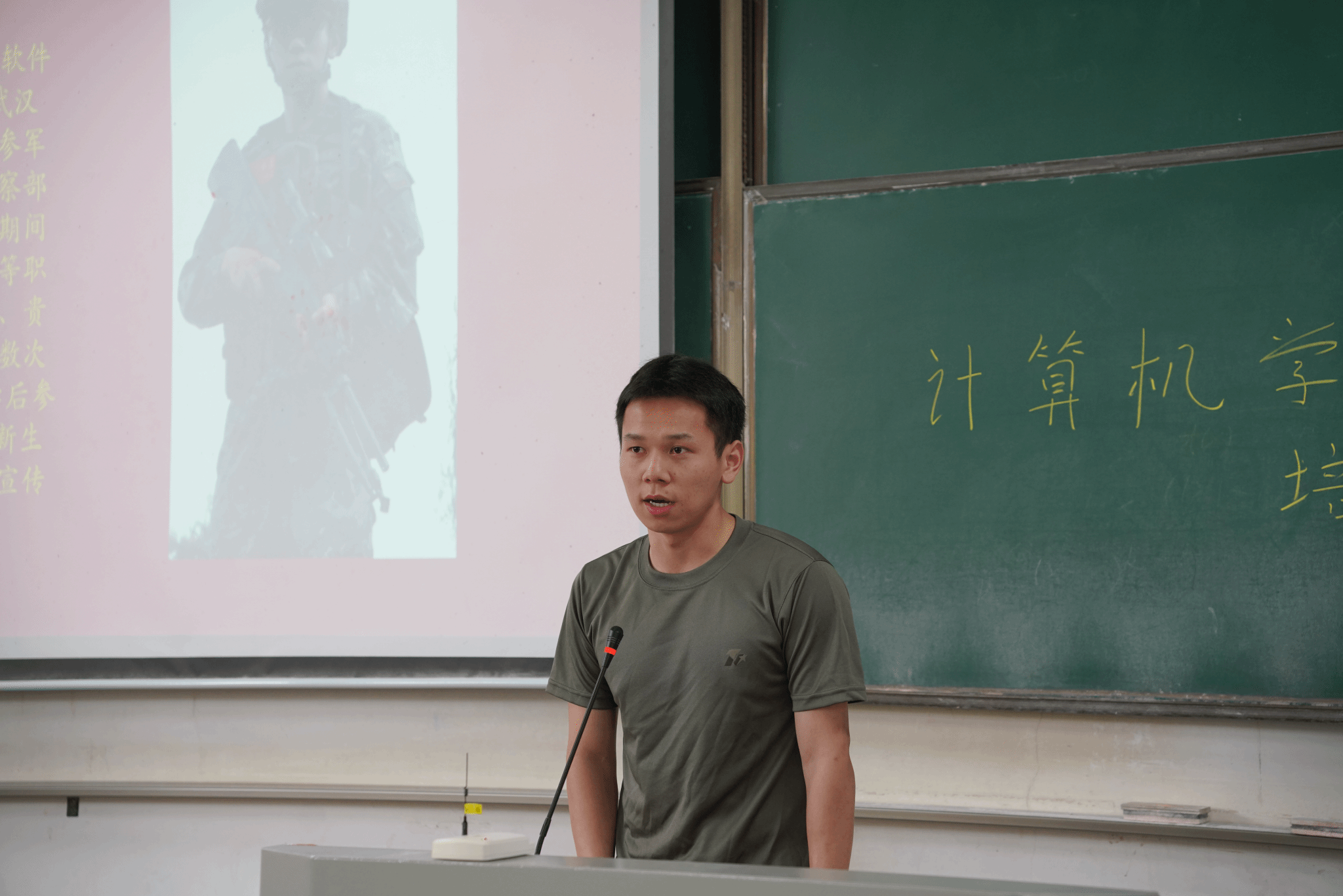 少时立志尚武,长大报国从军。为切实做好2024年秋季征兵工作,进一步扩大征兵宣传的覆盖面和影响力,激发大学生携笔从戎、报效国家的热情,5月12日,计算机与人工智能学院于3号教学楼115、116教室顺利开展2024年秋季征兵宣讲会,扎实推进“三个一”征兵宣传工作。