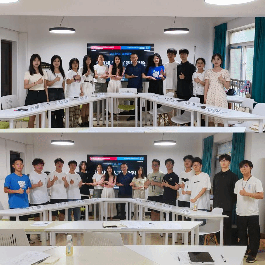 为提高计算机与人工智能学院学生的思辨能力及语言表达能力,培养学生的创新能力及团队合作精神,5月26日下午,计算机与人工智能学院在五栋一站式举行“言之有AI·思辩计智”辩论初赛,本次辩论赛评委由学院党委书记晏伟、辅导员余梦帆、陈祯、易凡及学生大众评委组成,辩题围绕当代大学生所关注的时事热点展开,共有来自2023级八支本科生队伍参赛。