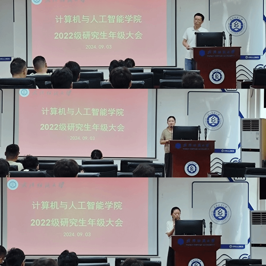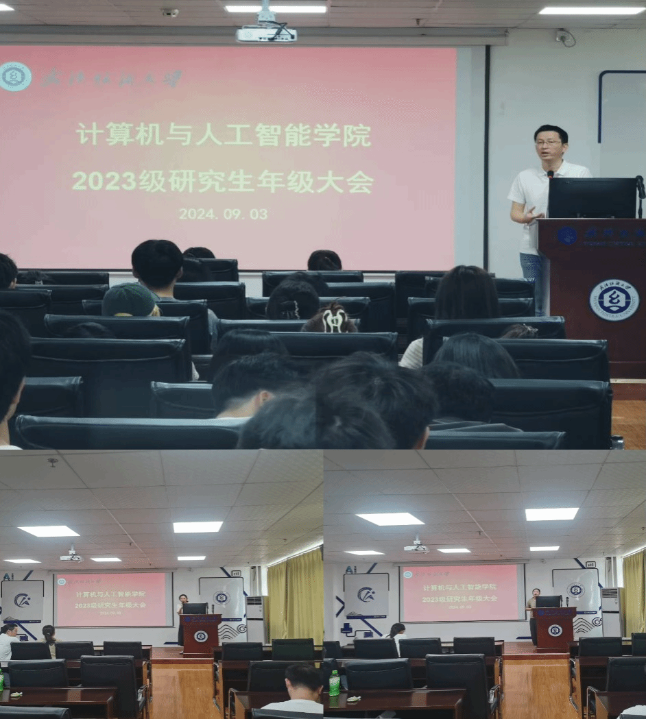 为了迎接新学期的到来,9月3日上午,计算机与人工智能学院召开了本学期第一次研究生年级大会。会议由副院长彭涛主持,参会的有教学秘书罗园、辅导员余梦帆和全体22级、23级研究生。