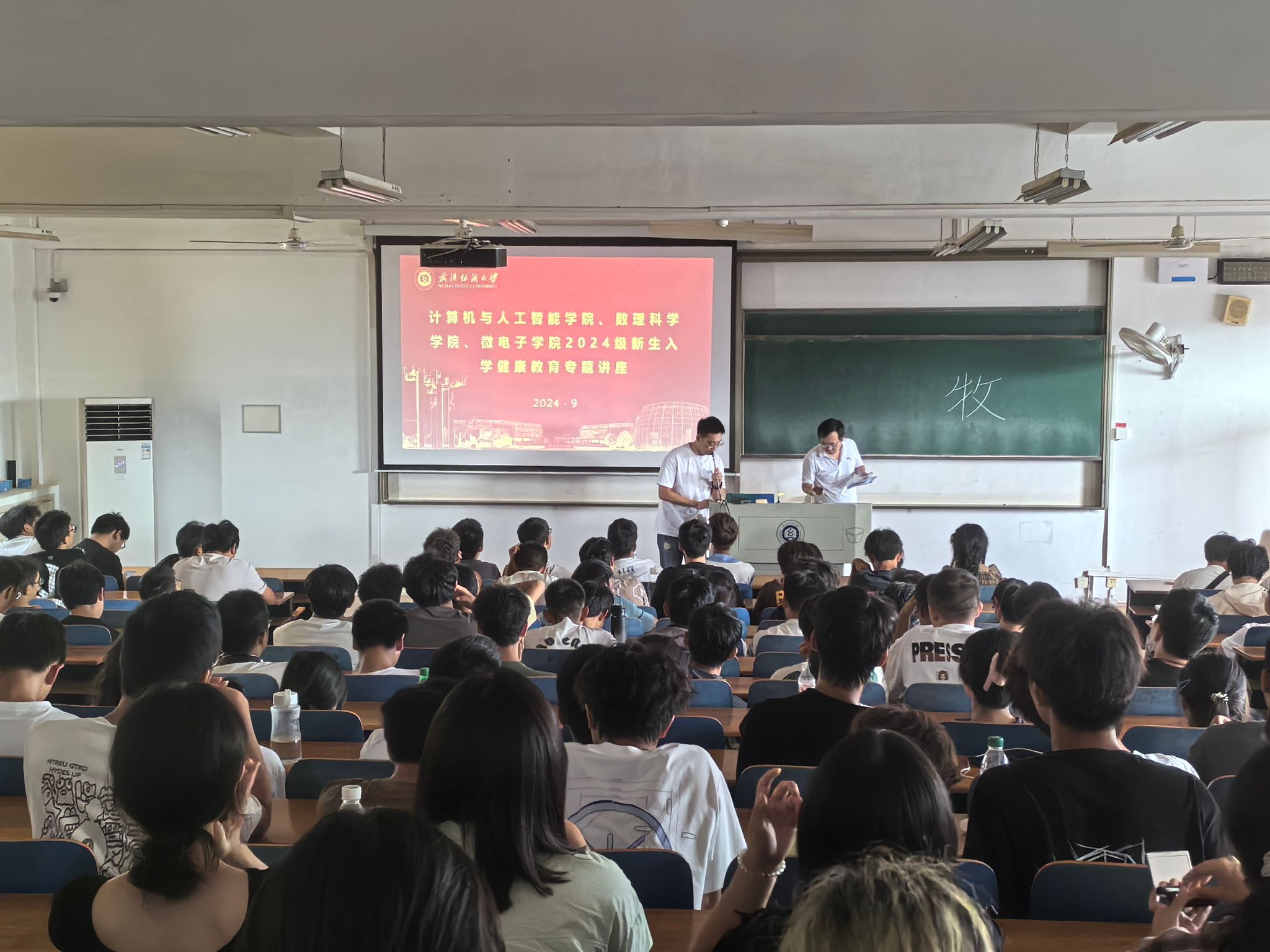 为全面提升新生的健康安全意识和自我保护能力,9月25日下午,计算机与人工智能学院、数理科学学院、微电子学院联合开展2024级新生入学健康教育专题讲座。本次讲座由武汉纺织大学校医院牧标医生、参会学院全体新生辅导员,参会学院全体新生共同参与。