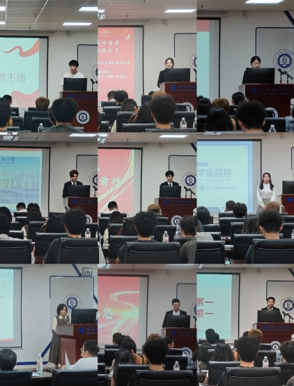 经过个人申请、资格审查、年级推荐,共有9名学生进入现场答辩环节。秉持着公平、公正、公开的原则,此次答辩会议全程录像,学院评审会全体成员均进行打分。在答辩正式开始之前,易凡详细地向大家阐述了答辩的具体流程以及相关注意事项。根据事先的抽签顺序,每位答辩的同学拥有五分钟的上台发言时间,他们分别从思想状况、学业成绩、科技竞赛经历、学生工作以及实践服务等多个维度,全面地展示了自己在2023—2024学年中所取得的进步与成长,展现了计智学子的风采与担当。