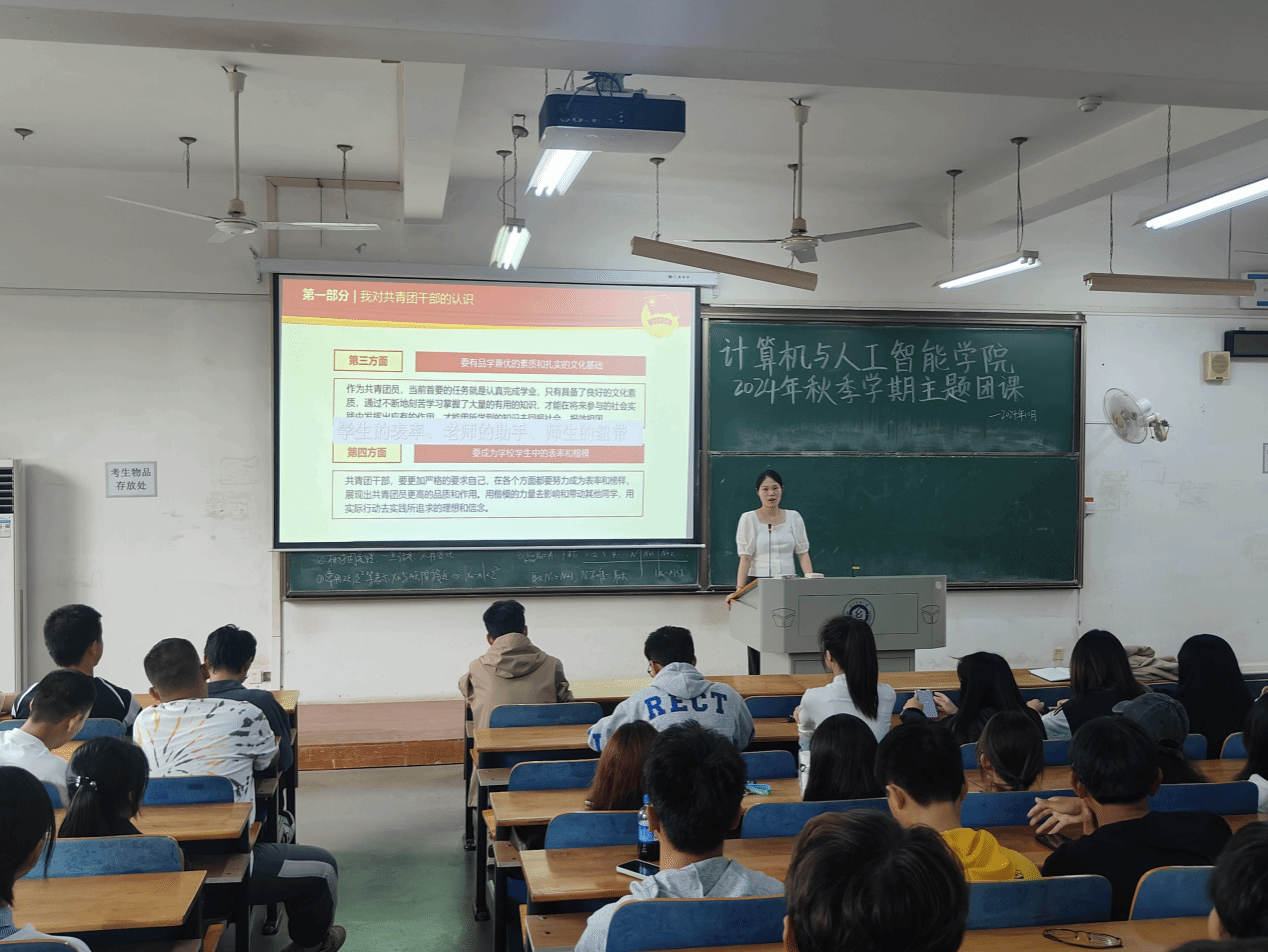 为深入学习贯彻习近平新时代中国特色社会主义思想和党的二十大精神,不断提升团干部的理论水平和工作能力,计算机与人工智能学院开展秋季学期系列主题团课。10月10日下午,院学工办主任、团委书记喻仪作为团课主讲人进行团课讲授。