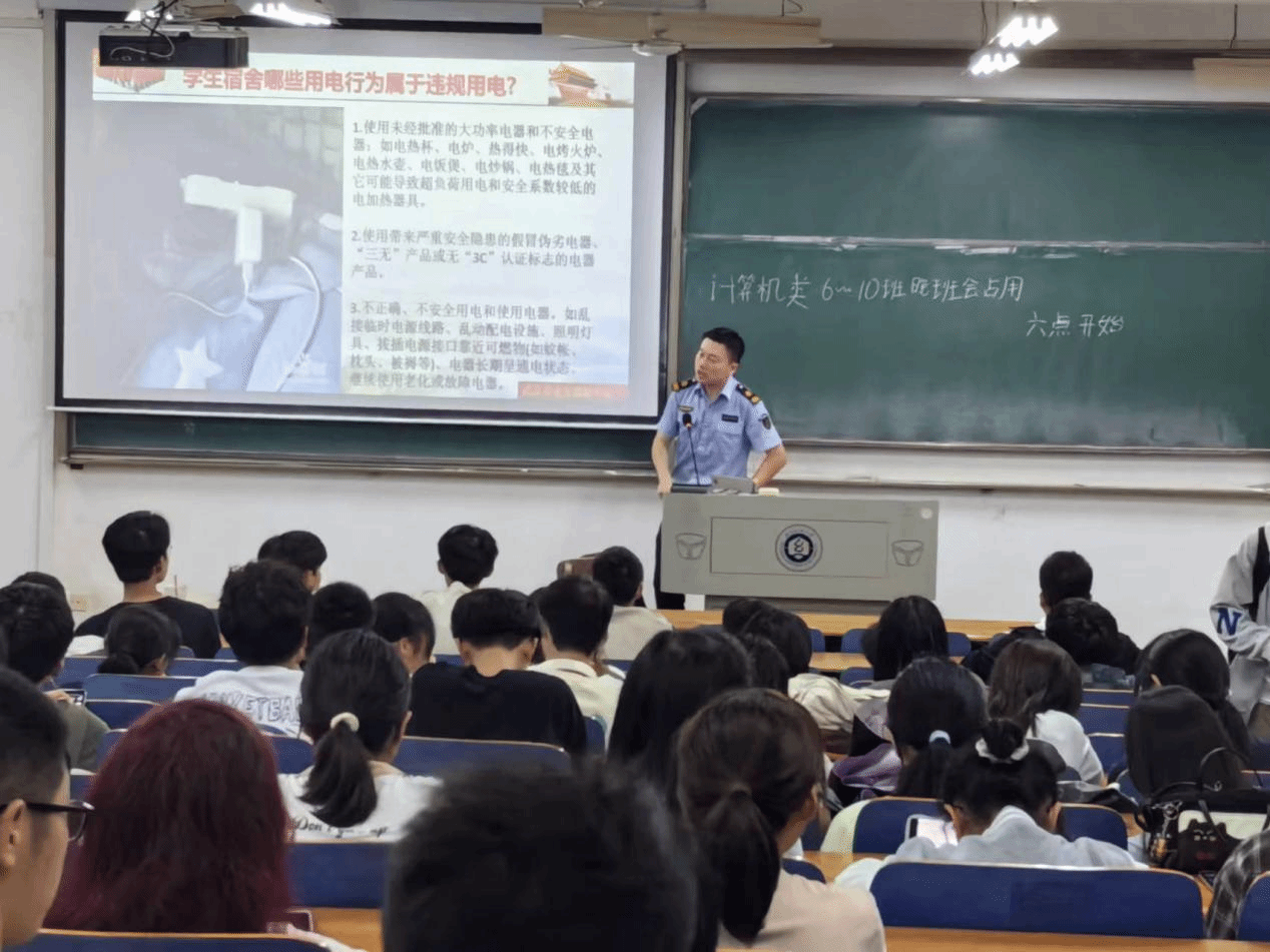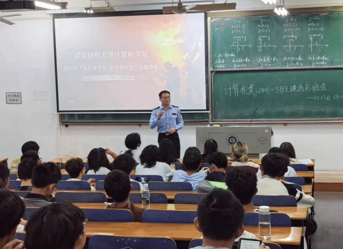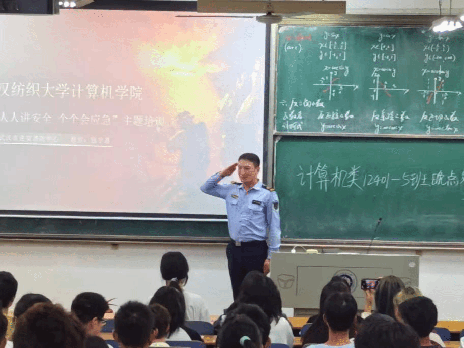 为进一步增强学生消防安全意识,避免校园消防事故的发生。10月13日下午,计算机与人工智能学院开展2024级新生“人人讲安全,个个会应急”消防安全主题培训。武汉市进安防火中心包宇惠教官、汪阳教官,学院2024级本科生辅导员,学院2024级全体新生共同参与此次培训,本次培训分为三场,由包宇惠教官、汪阳教官主讲。