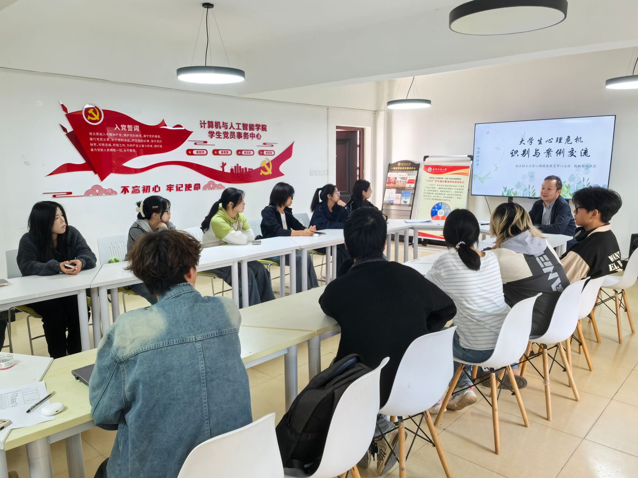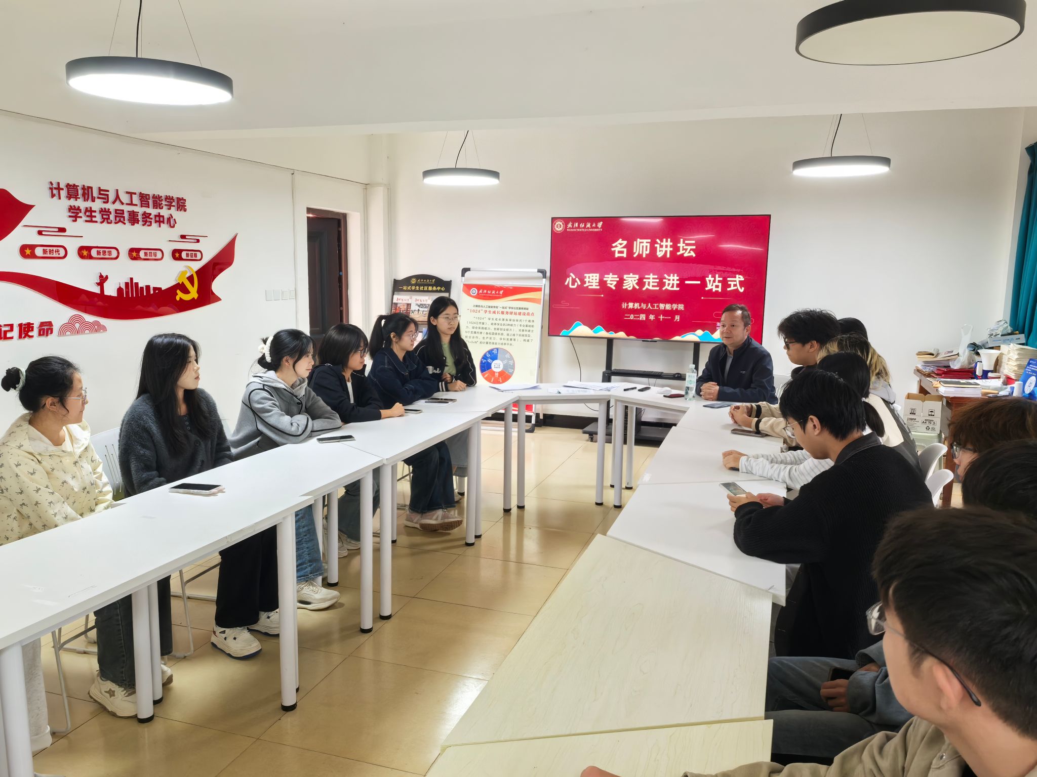 为帮助同学们了解心理学相关知识,提升心理委员工作技能,11月7日下午,计算机与人工智能学院在“1024”一站式学生服务驿站成功举办以“名师讲坛——心理专家走进一站式”为主题的心理培训活动。此次活动邀请了武汉轻工大学心理健康教育中心主任魏鹏程教授主讲,学院2024级辅导员、2024和2023级心理委员共同参与。