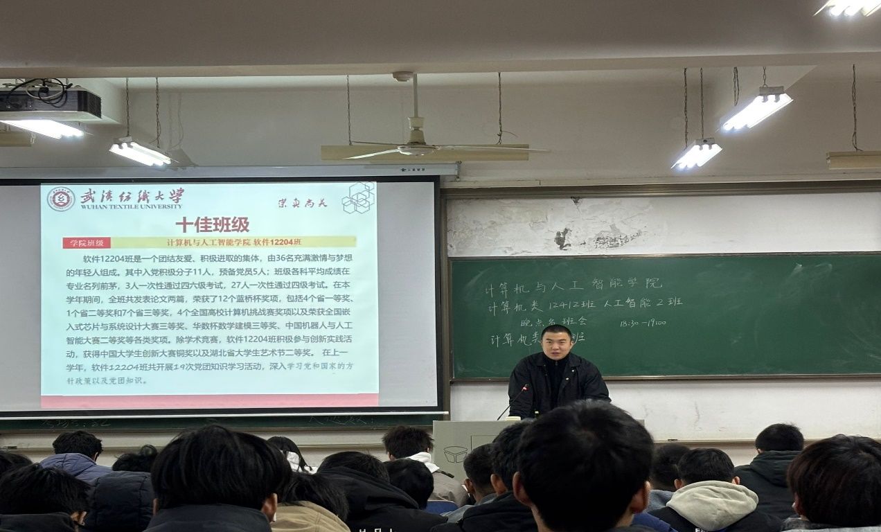 为激励学生积极进取,计算机与人工智能学院于12月22日晚开展了“十佳班集体风采展”主题班会。学院全体班主任、辅导员和全体学生共同参与此次班会。