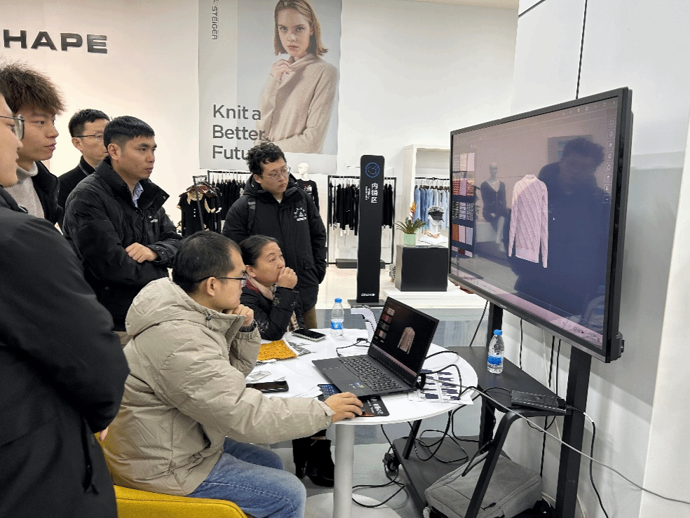 在了解了纬编针织实物特点后,工程师们进一步用自研专业软件为师生们展示了目前慈星在纬编针织服装三维虚拟仿真、数字化设计和生产等方面的最新技术进展。大家根据自身的研究方向,结合演示效果和工程师们进行了深入的技术探讨。通过这一过程,同学们不仅深刻认识到了自己工程和研究能力上的不足,也进一步明确了接下来努力的方向。