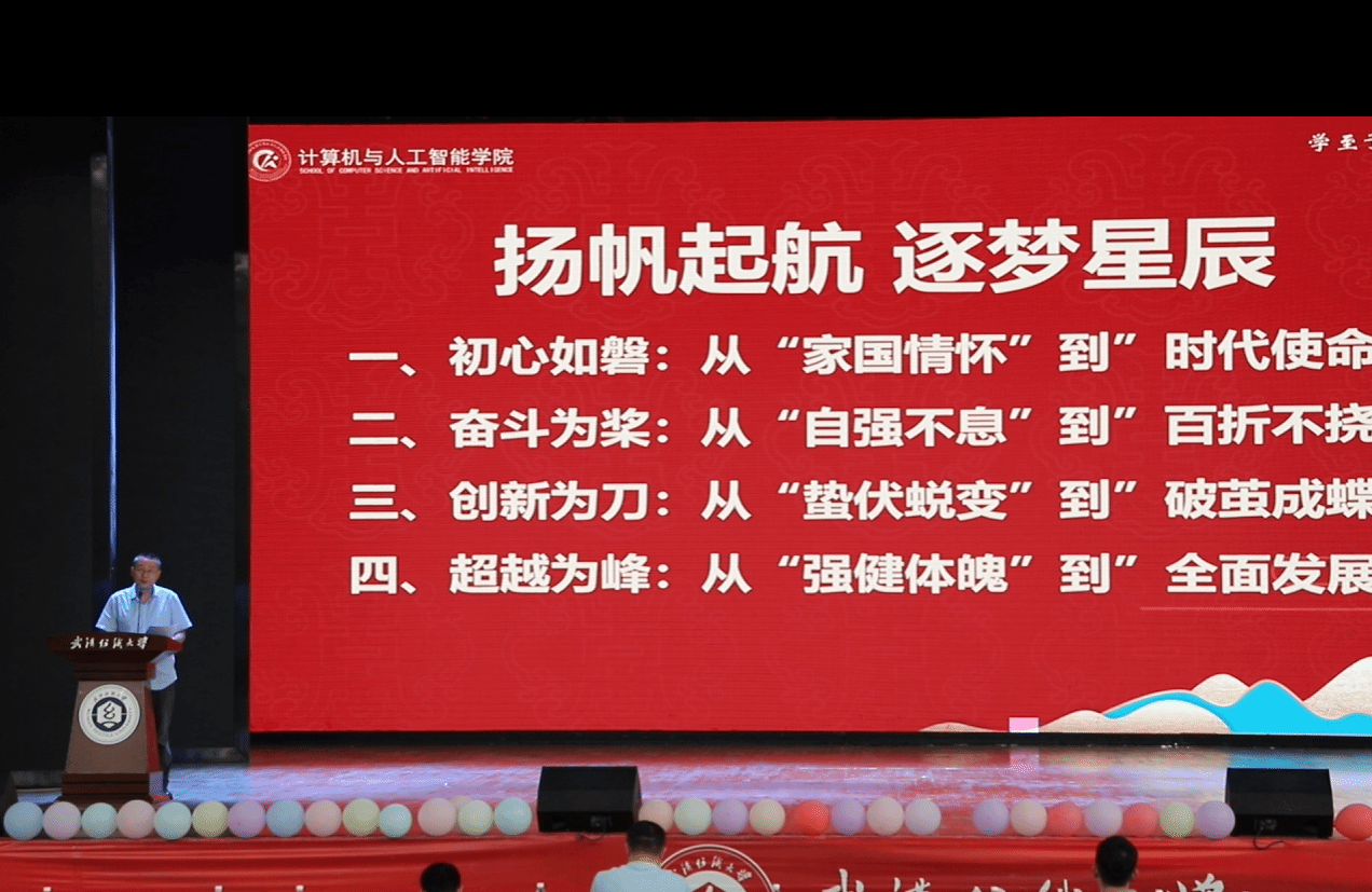 院长胡新荣、院党委书记晏伟以“初心、奋斗、创新、超越”为关键词,对毕业生们送上了深情的勉励。一是希望同学们要初心如磐,要有“家国情怀”,时刻牢记自己肩负的“时代使命”;二是勉励同学们以奋斗为桨,永远保持“爬坡者”的姿态,在挫折中淬炼,在坚持中升华;三是希望同学们以创新为刃,在无人涉足的荒野开辟新路,在技术高原上竖起属于纺大计智青年的旗帜;四是鼓励同学们以超越为峰,在数字时代守护人性的温度,在算法洪流中坚守价值的灯塔。