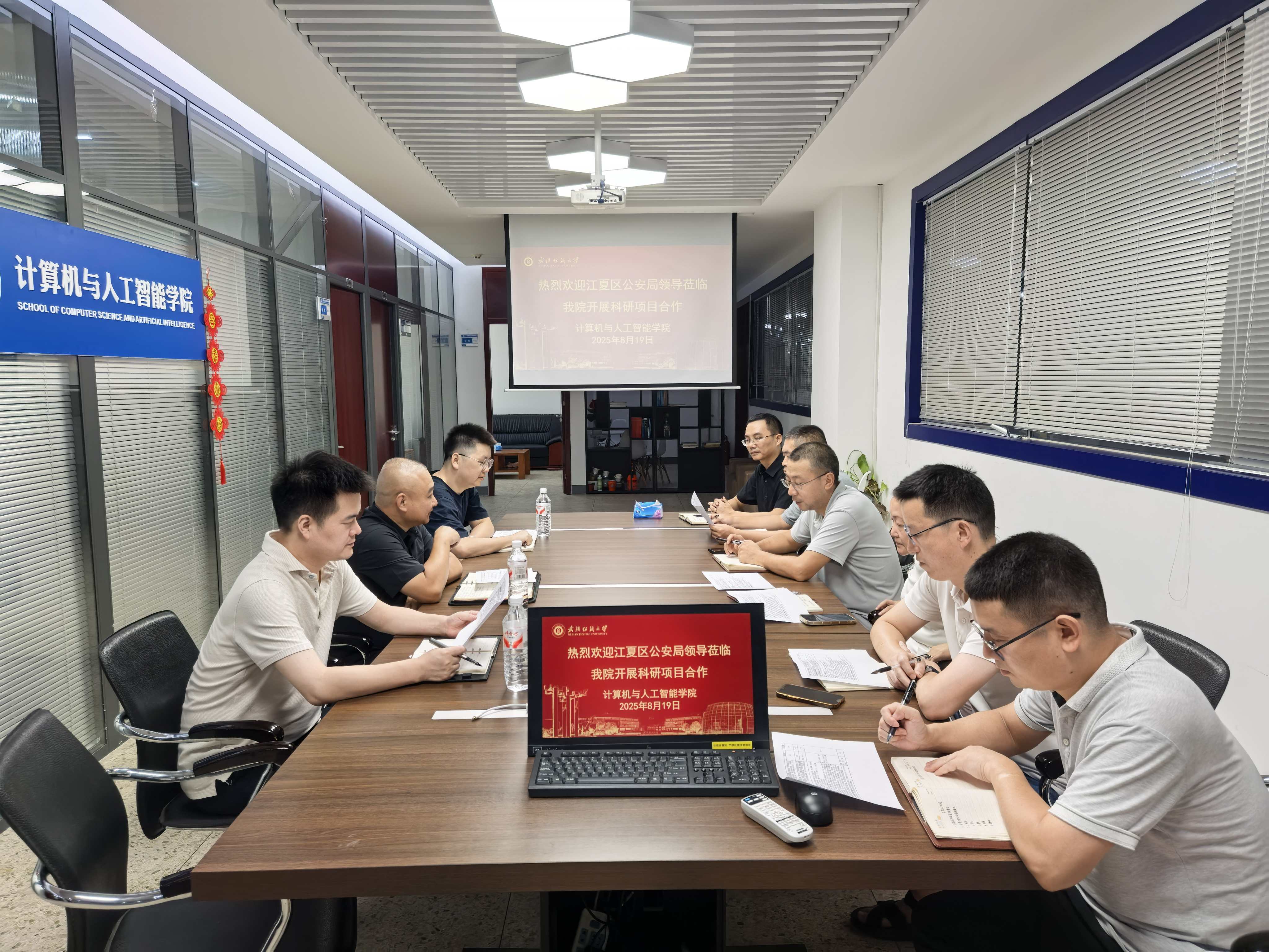 8月19日上午,江夏区公安分局网安大队马志强大队长一行莅临计算机与人工智能学院(网络空间安全学院)开展调研与交流。计算机与人工智能学院(网络空间安全学院)院全体领导班子参加会议。