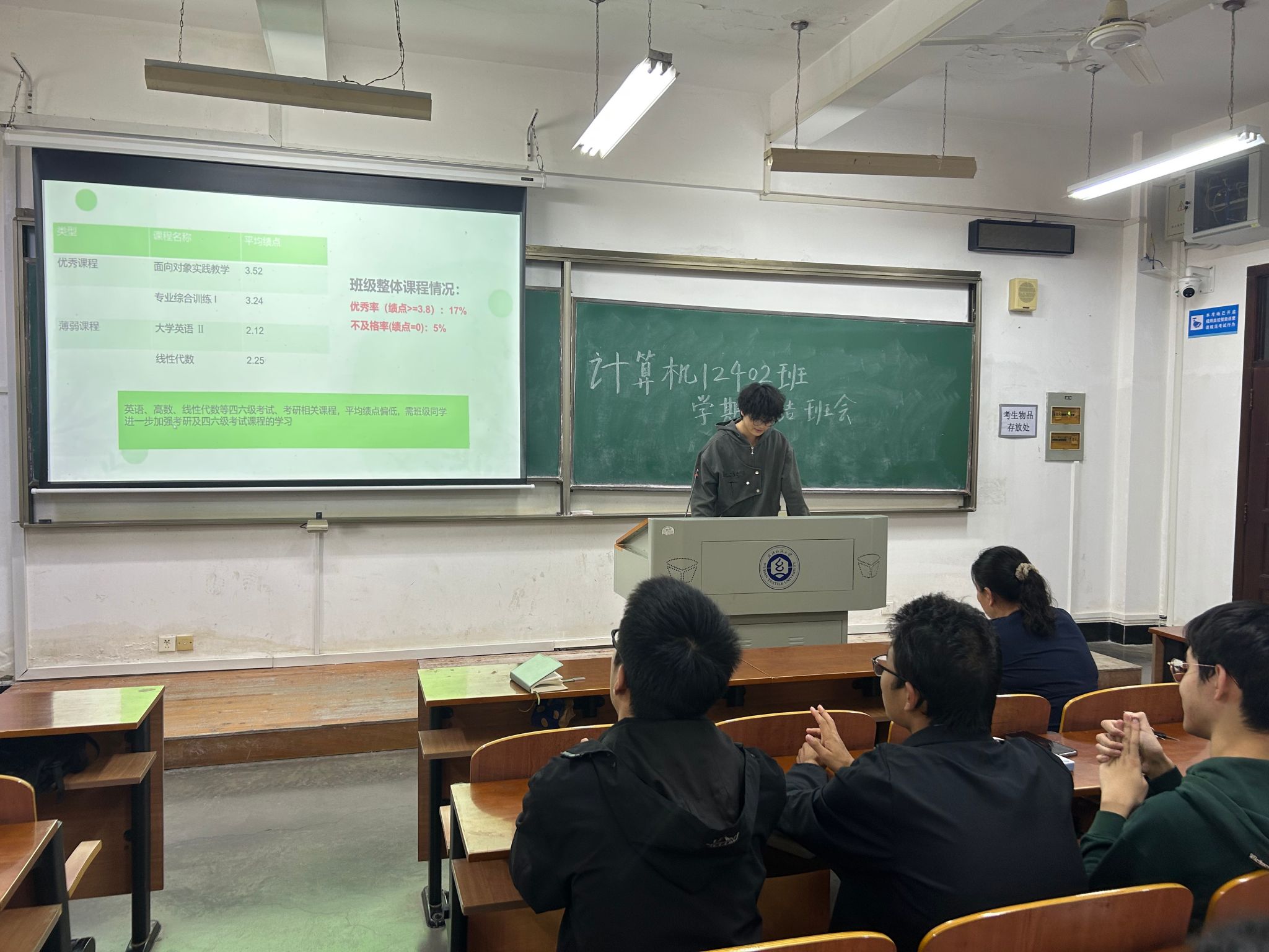 9月25日,计算机与人工智能学院计算机12402班在崇志楼112开展学期小结班会。学院院长、计算机12402班班主任胡新荣教授,2024级辅导员李港及计算机12402班全体学生参与本次班会。