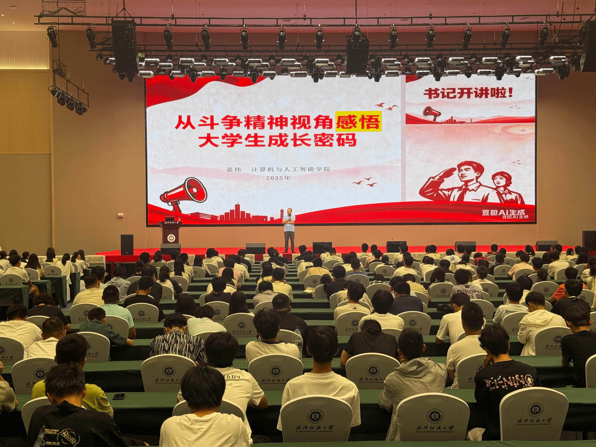 为引导2025级新生坚定理想信念、明确大学目标、规划人生方向,近日,武汉纺织大学计算机与人工智能学院党委书记晏伟在崇志楼、健全会堂健全厅分别为学院全体2025级新生举行了两场“书记开讲啦”专题党课。