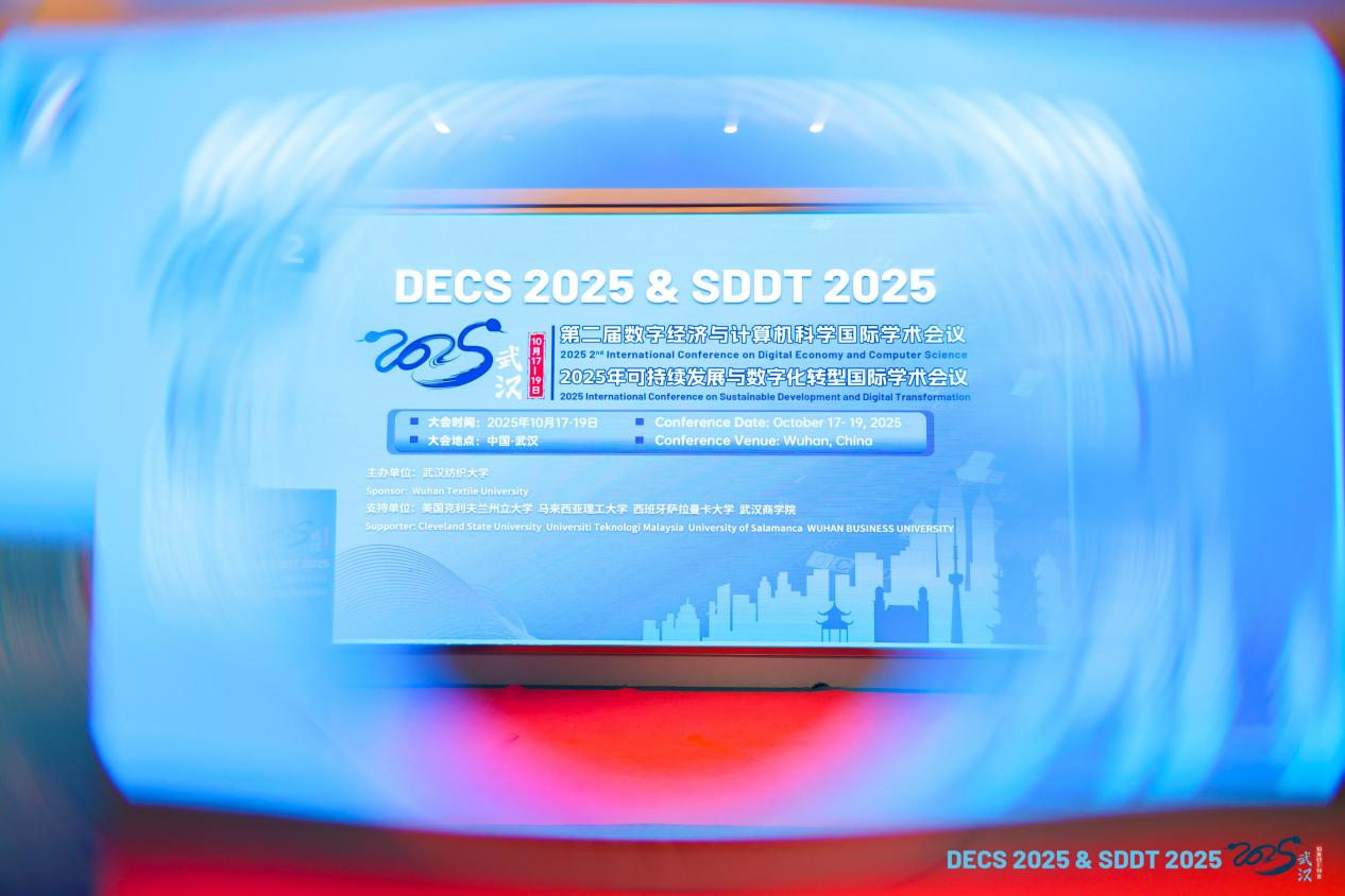 10月18日,DECS 2025 第二届数字经济与计算机科学国际学术会议与 SDDT 2025 年可持续发展与数字化转型国际学术会议,在武汉圆满落幕。本次会议由武汉纺织大学计算机与人工智能学院主办,美国克利夫兰州立大学、香港珠海学院、马来西亚理工大学、西班牙萨拉曼卡大学及武汉商学院等知名院校鼎力支持,吸引了国内外众多专家学者线上线下共赴学术盛宴。