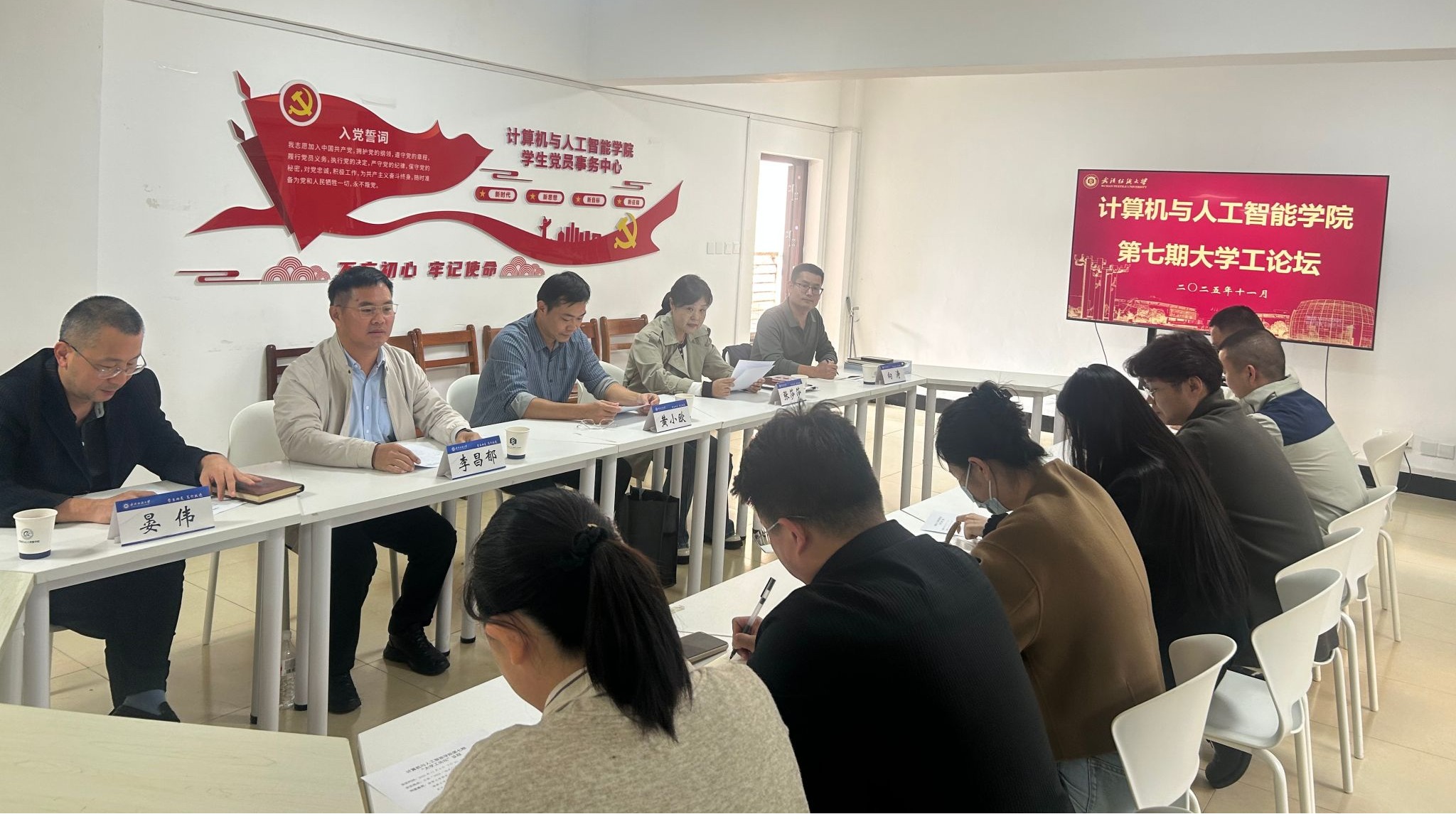 11月4日,计算机与人工智能学院在五栋“1024一站式”学生社区成功举办第七期大学工论坛。本次论坛特邀海南大学乘风书院党委书记黄小欧、天工书院党委书记李昌郁,武汉纺织大学学工部部长张莎莎出席。计算机与人工智能学院党委书记晏伟、党委副书记向涛及学院全体辅导员共同参与。会议由向涛主持。
