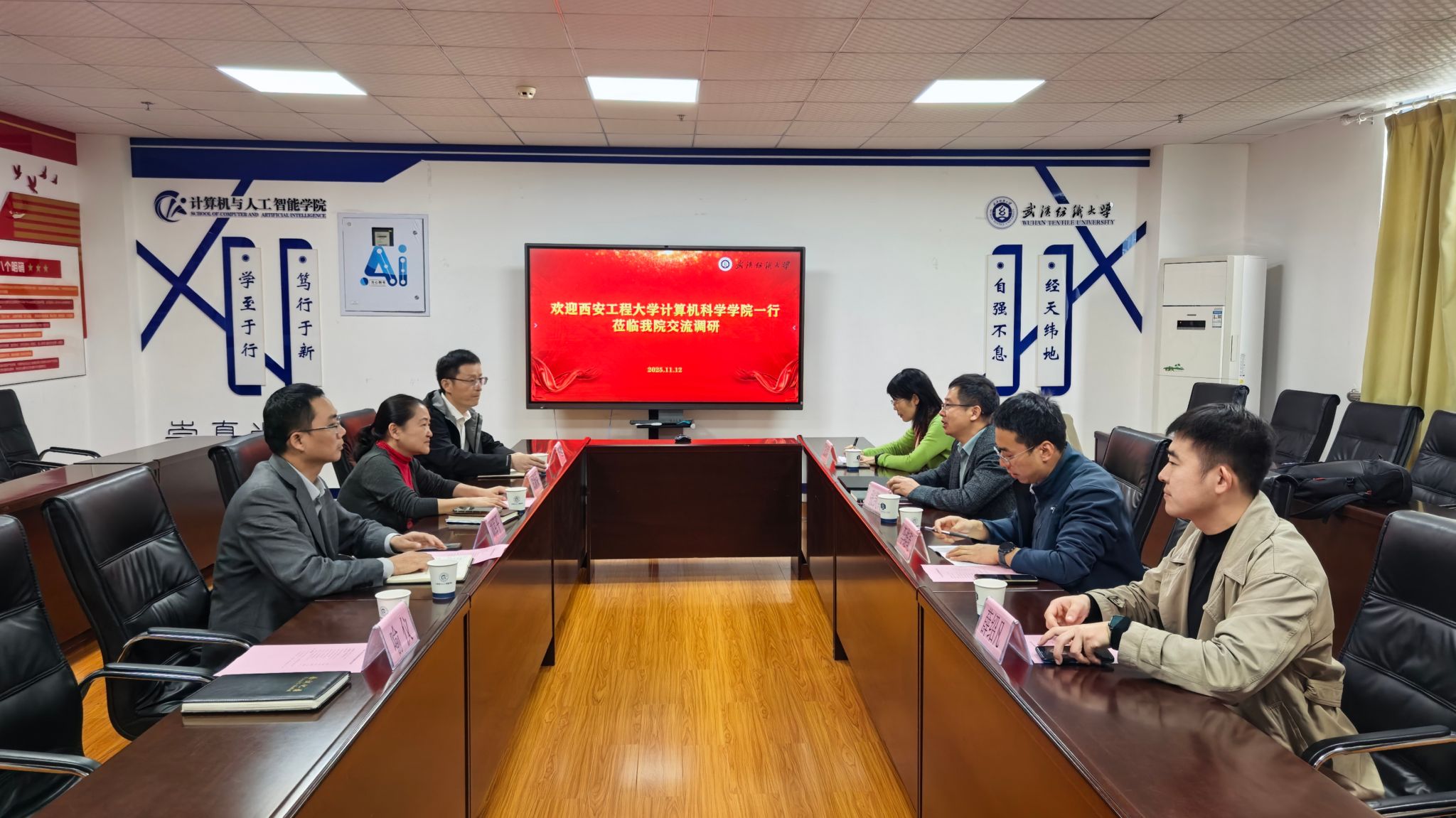 为进一步加强兄弟院校计算机学科间的交流合作,借鉴先进办学经验,推动学院各项事业高质量发展,11月12日上午,西安工程大学计算机科学学院副院长(主持工作)张凯兵教授一行4人到武汉纺织大学计算机与人工智能学院开展调研。武汉纺织大学计算机与人工智能学院院长胡新荣热情接待了计算机科学学院一行,双方围绕多领域合作与发展事宜展开深入探讨。