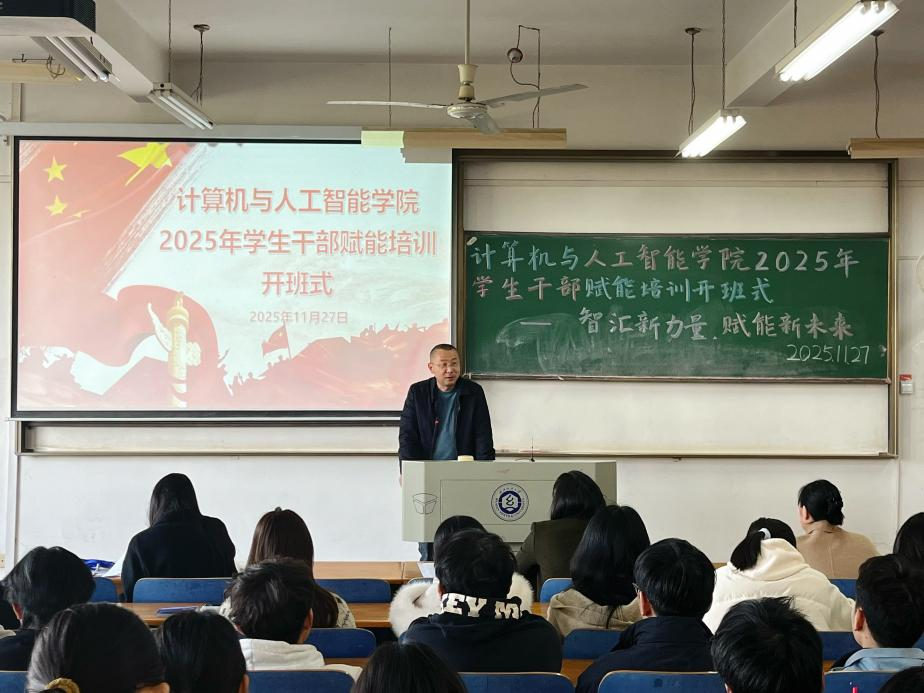 为切实加强学院学生干部队伍建设,提升学生骨干的综合素质与履职能力,11月27日下午,计算机与人工智能学院在崇志楼03-218教室举行2025年学生干部赋能培训开班式。校团委副书记侯畅、学院党委书记晏伟出席活动。院团委书记喻仪、院团委指导老师易凡、研究生辅导员余梦帆,以及研究生会、第五届团委学生会全体成员、2024级与2025级全体班委参加。活动由喻仪主持。