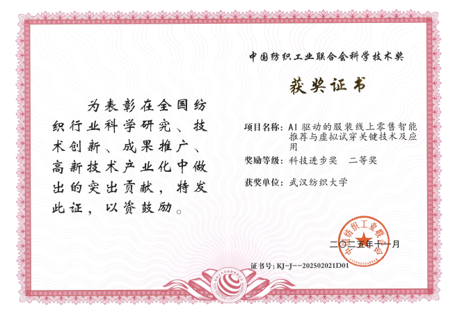 此次获奖成果面向国家战略与行业重大需求,产学研融合特色显著。由姜明华副校长主持完成的“生成式大模型驱动的服装智能制造关键技术与应用”项目,荣获中国纺织工业联合会技术发明二等奖。该项目创新性地将前沿生成式大模型技术与传统服装制造深度融合,为行业智能化升级提供了关键核心技术路径。由学院胡新荣院长主持的“AI驱动的服装线上零售智能推荐与虚拟试穿关键技术及应用”项目,同获中国纺织工业联合会科技进步二等奖。该成果聚焦服装零售数字化转型痛点,在智能推荐与虚拟试穿技术上取得突破,为产业提供了重要技术支撑。此外,潘雄教授主持完成的“北斗卫星导航系统测量误差精细建模理论与方法”项目,荣获湖北省自然科学奖二等奖,该研究在提升北斗导航系统精度方面取得了重要理论突破,具有显著的科学价值。