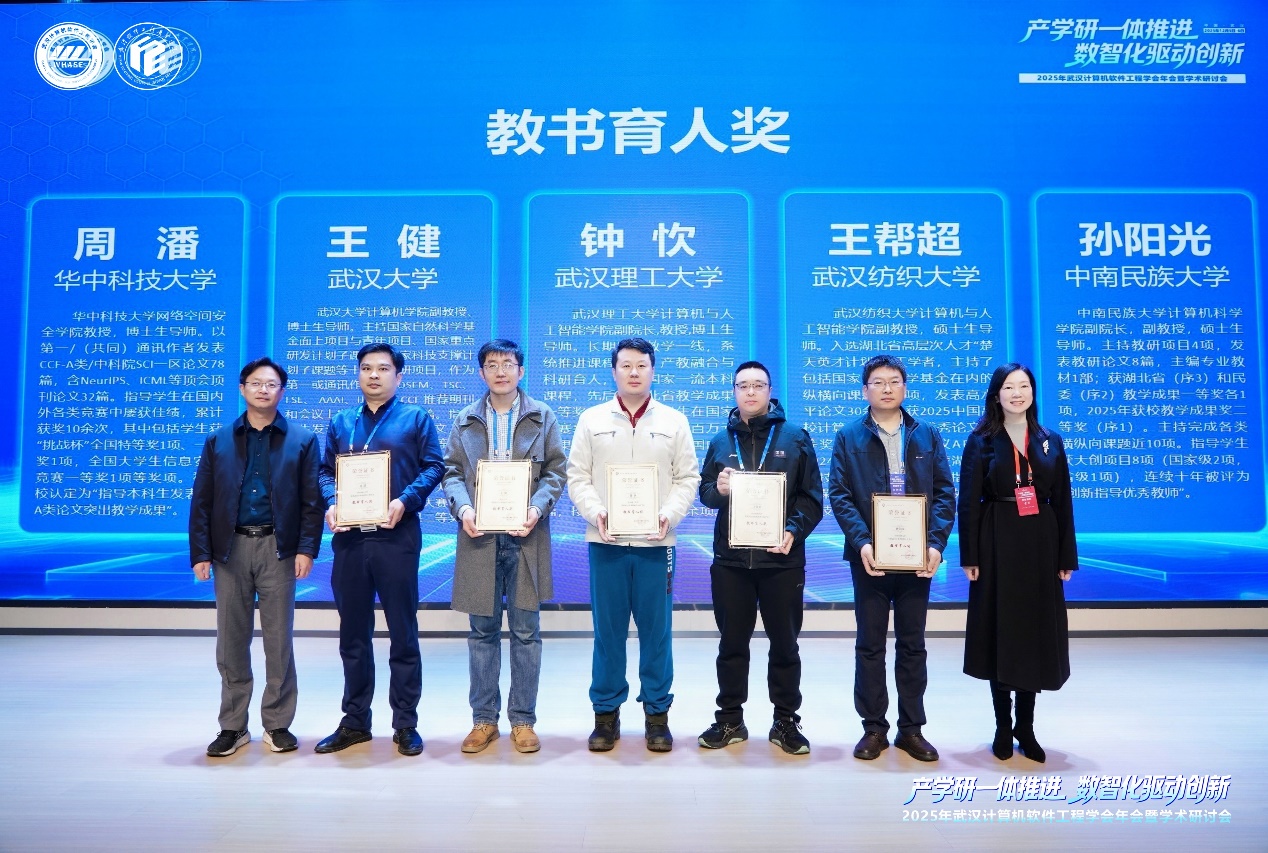 12月6日,在2025年武汉计算机软件工程学会年会暨学术研讨会的颁奖仪式上,我院软件工程系王帮超副教授喜获学会“教书育人奖”荣誉。该奖项是武汉计算机软件工程领域教育教学类的重要荣誉,每年评选不超过5名,需由不少于2名学会理事联名推荐,充分彰显了王帮超副教授在教育教学一线的突出成就与业界认可。
