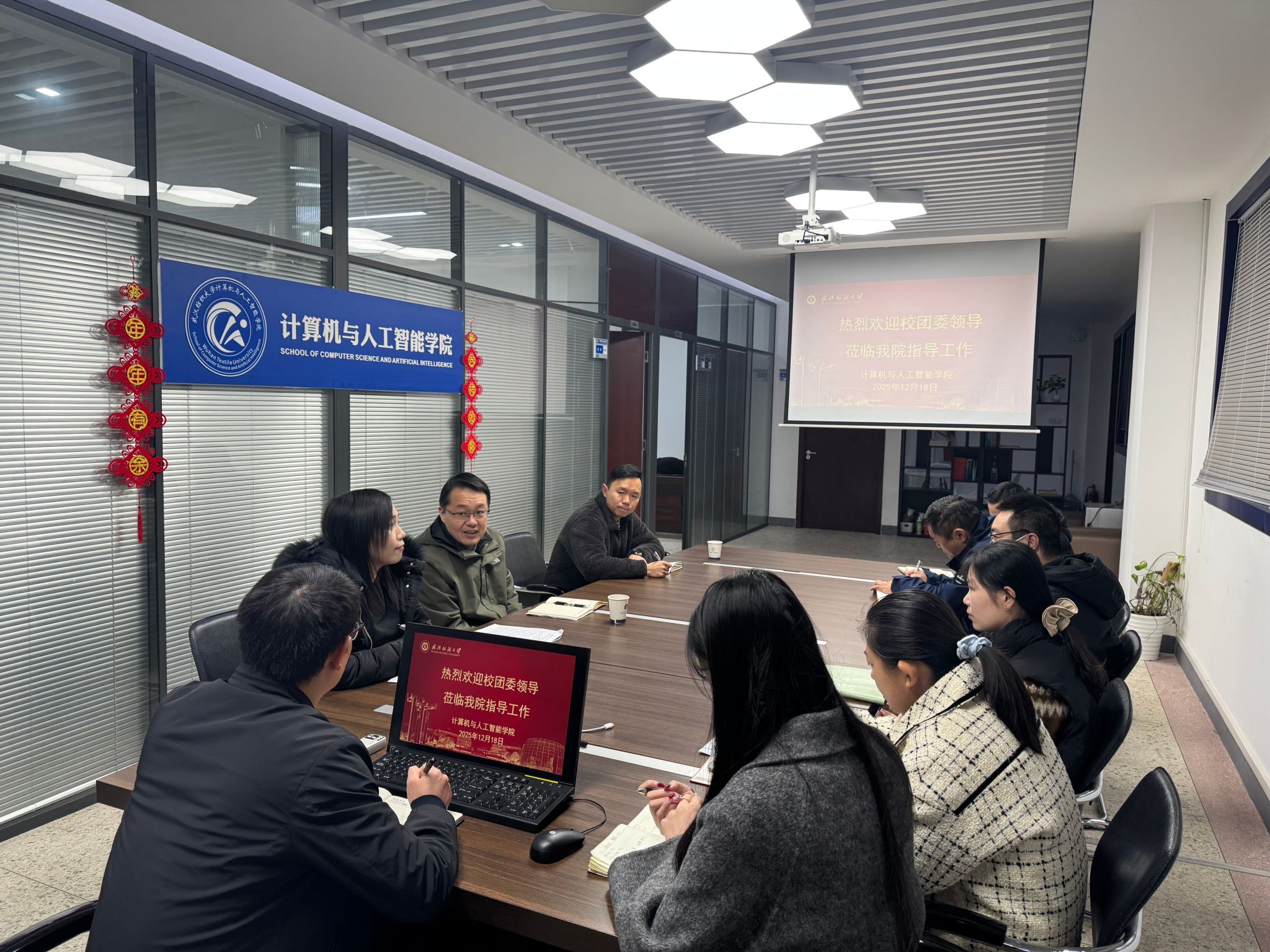12月18日,校团委书记张德科、副书记侯畅,团委老师孙榜骏一行前往计算机与人工智能学院(网络空间安全学院),开展团学工作建设调研指导会议。学院副院长魏雄、刘军平,院党委副书记向涛,校团委挂职老师王帮超及辅导员代表参加本次会议。会议由向涛主持。