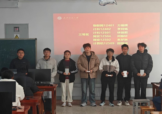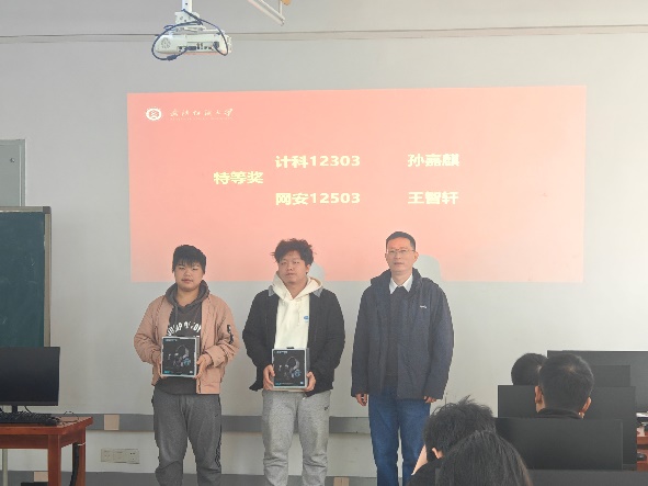 随后举行的颁奖典礼将现场气氛推向高潮。赛事奖项按新生与老生分别评比,共14名同学获奖。孙嘉麒、王智轩两位同学凭借顶尖表现,荣膺本次比赛的特等奖。高延榛、汤玉迪荣获一等奖,钟宇峰等4名同学获得二等奖,万福辉等6名同学获得三等奖。学院领导及教练张自力老师依次为获奖选手颁奖并合影留念。
