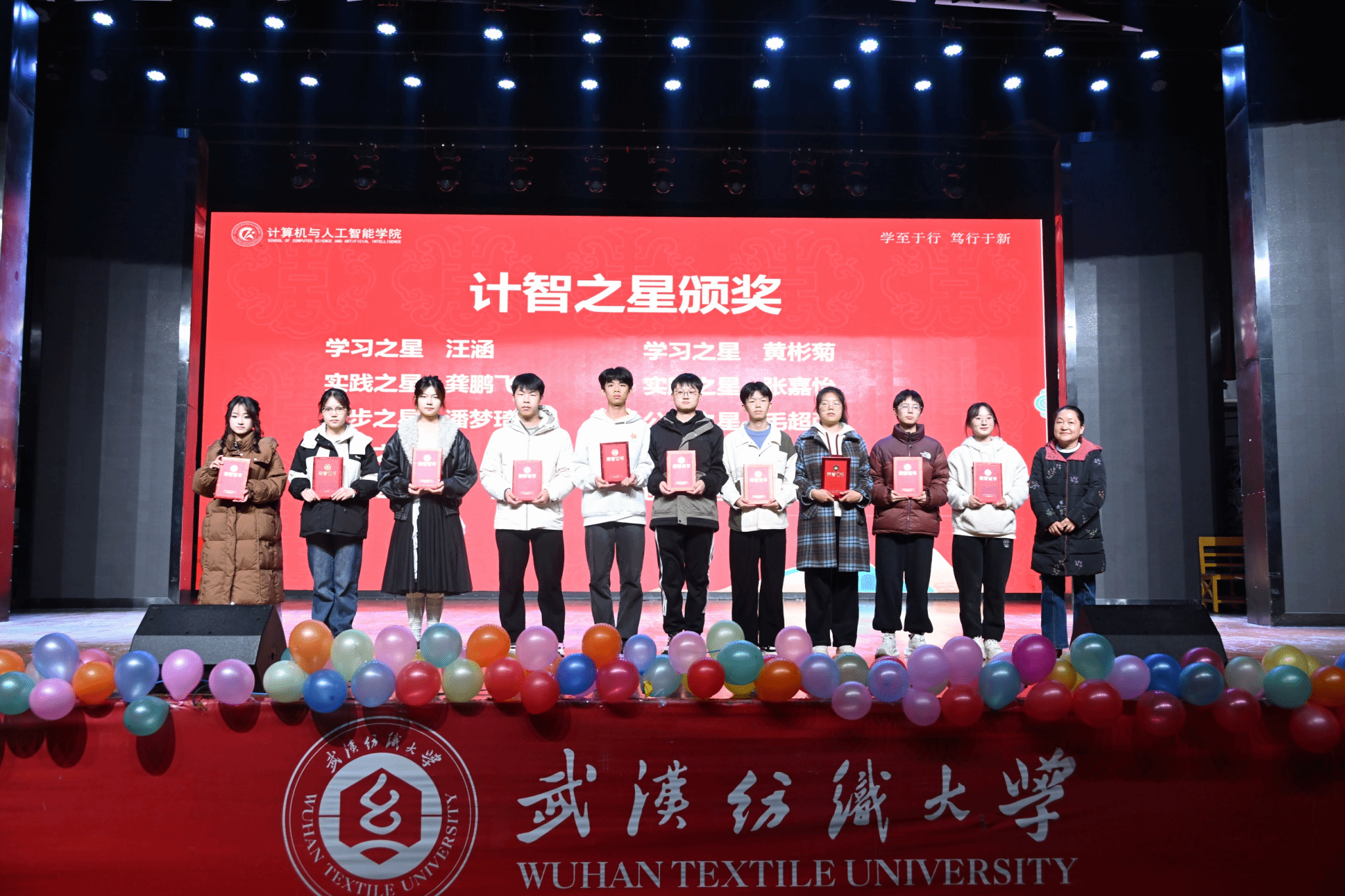 表彰大会落下帷幕后,以“新星逐梦·智启新元”为主题的新年晚会,在杨冠宇、彭佳豪、韩萱怡、杨欣怡四位学生主持人的巧妙串联下正式启幕。晚会精心设置“星火·初燃”“征途·共赴”“破晓·智现”“星河·同辉”四个篇章,穿插趣味互动抽奖环节,歌舞、小品、器乐、朗诵等各类节目轮番登台,全方位展现了计智学子的青春风采与多元才华。