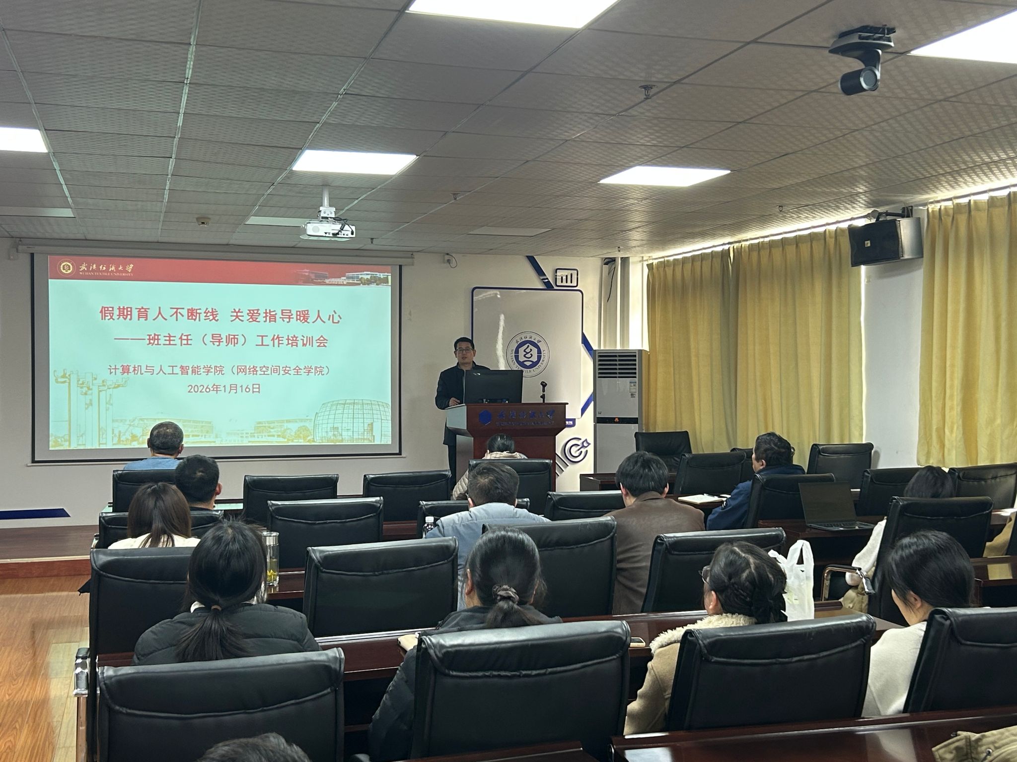为进一步加强班主任队伍和德育导师队伍建设,提升班主任工作水平,更好地服务学生成长与学院发展,1月16日,计算机与人工智能学院组织开展班主任暨德育导师工作培训会。院党委副书记向涛出席会议,各年级班主任、德育导师及辅导员共同参会。