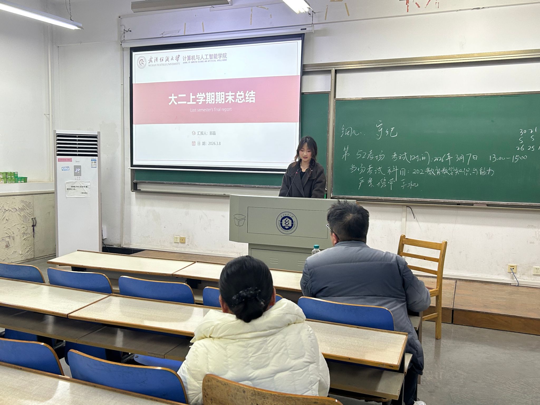 在物联网 12401 班、12402 班学期小结班会上,胡新荣认真倾听同学们的反思与规划,充分肯定自我总结、主动自省对青年成长的重要意义。她语重心长地叮嘱大家,大学时光贵在自律、自省、自励,要锚定学习目标、细化成长路径,在扎实完成学业任务的同时,多走进图书馆积淀知识、多走进实验室锤炼技能、多走进运动场强健体魄,让青春在全面发展中绽放光彩,让大学生活充实而丰盈。