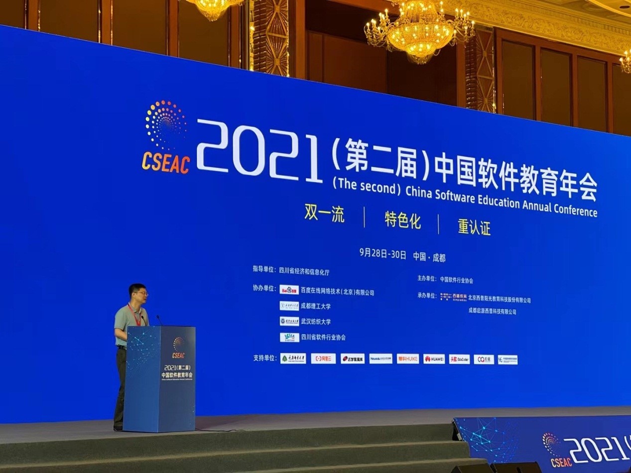 9月29日,由中国软件行业协会主办、武汉纺织大学协办的2021年中国软件教育年会在四川成都召开,本次大会邀请中国计算机类专业工程教育认证专家、学者共同探讨工程教育认证、“双一流”专业建设与实践,促进新工科产学研融合发展,提升我国高校计算机领域的工程教育认证质量。计算机与人工智能学院多位专家学者参会,计算机与人工智能学院院长胡新荣教授受邀做专题报告。