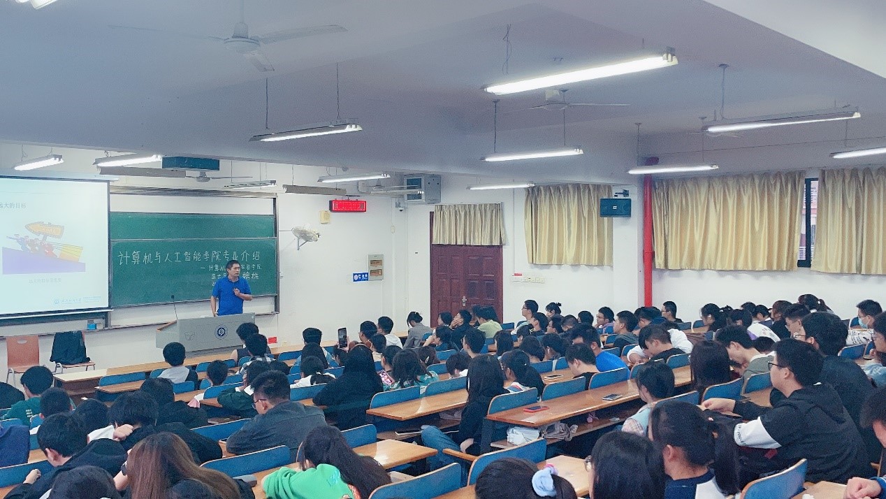 为加深同学们对计算机类各专业的了解,使同学们明确专业学习目标,10月14日下午,计算机与人工智能学院在崇志楼208、318、319教室开展计算机专业介绍会。本次会议由计算机与人工智能学院副院长魏雄主讲,新生辅导员及全体2021级新生参加了此次会议。
