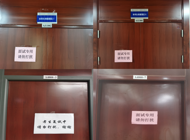 参加线上复试,对于在校考研学子来说,急需解决的难题就是复试场地如何选择。了解到同学们迫切需求后,经学院协调,腾挪出了专门的房间,崇真楼(南楼)A4008-3、A4008-7、A1001、A1002、A1006以及辅导员值班室等为复试的同学们提供场地,并且专门配置了若干个手机支架、接线板等配套设施,全力为复试学生解决硬件设备和复试环境问题,并积极与考研复试的同学们进行联系,了解考研复试的同学们还需要什么样的物品,进行集中商讨,对需要的物资进行准备,并做细致的安排。