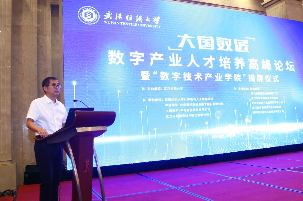 为积极探索产教融合、创新育人的跨界新模式,学校依托计算机与人工智能学院创建了全校首个产业学院——“数字技术产业学院”。8月6日,学校在金盾大酒店举行武汉纺织大学“数字技术产业学院”揭牌仪式,开启了学校产业学院建设新篇章。中国工程院院士柴天佑、欧洲科学院外籍院士焦李成,中国华录、中国电子、武汉光庭等合作企业领导,各兄弟高校计算机学院领导,中国工程院院士、校长徐卫林,学校办公室、宣传部、研究生院、教务处、科发院、人事处等学校相关部门负责人,计算机与人工智能学院班子成员和师生代表等参加会议。揭牌仪式由校党委常委、副校长姜明华教授主持。
