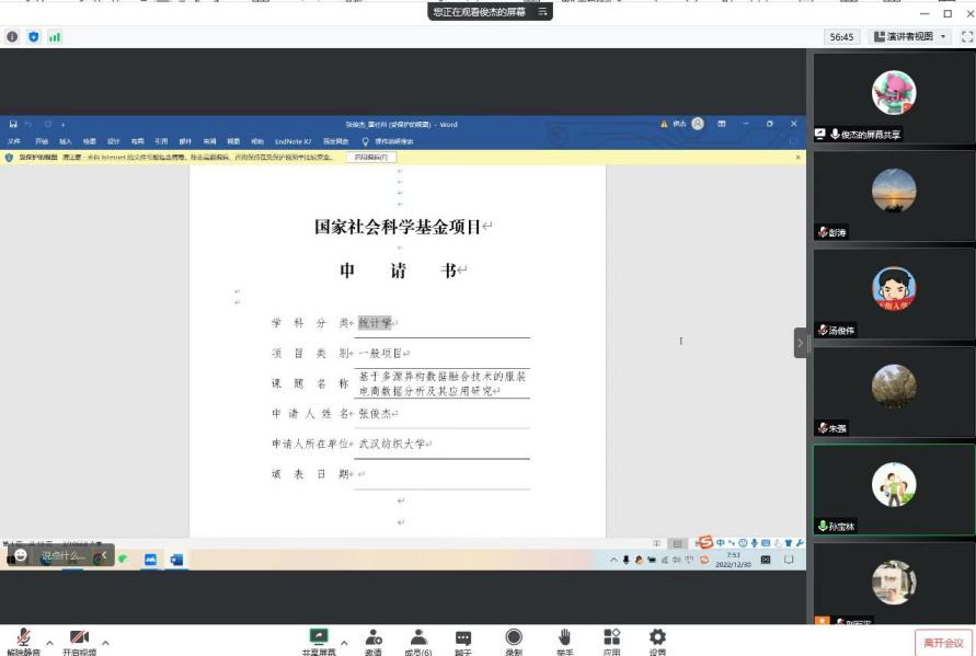 2022年12月30日,计算机与人工智能学院就国家基金(下面简称“基金”)申报举办了线上会议,湖北经济学院孙宝林教授应邀进行指导,学院领导班子及预申报基金的老师共同参会。