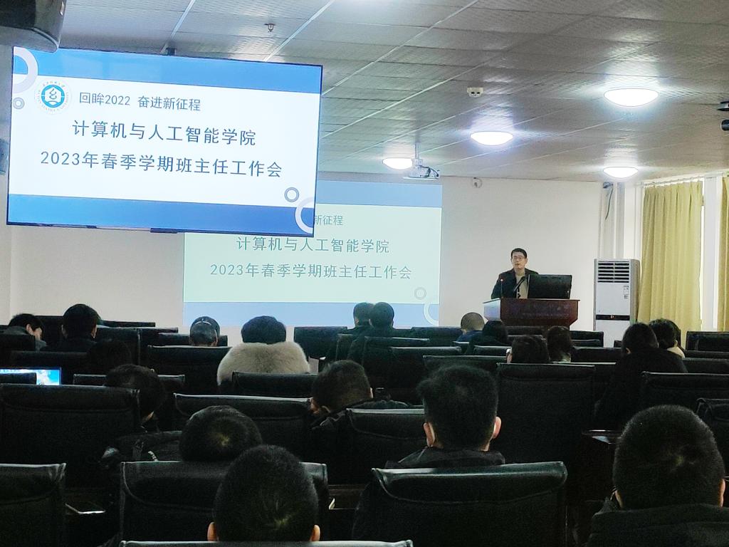 春启今朝,筑梦前行。为增强班主任工作能力,提高班主任工作业务水平,增强班级管理质量,提高思想政治工作的针对性和时效性,计算机与人工智能学院于2月12日在崇真楼(南楼)A4030召开了春季学期班主任工作培训会,学院党委书记晏伟、副书记向涛、全体班主任和辅导员参会,会议由向涛主持。