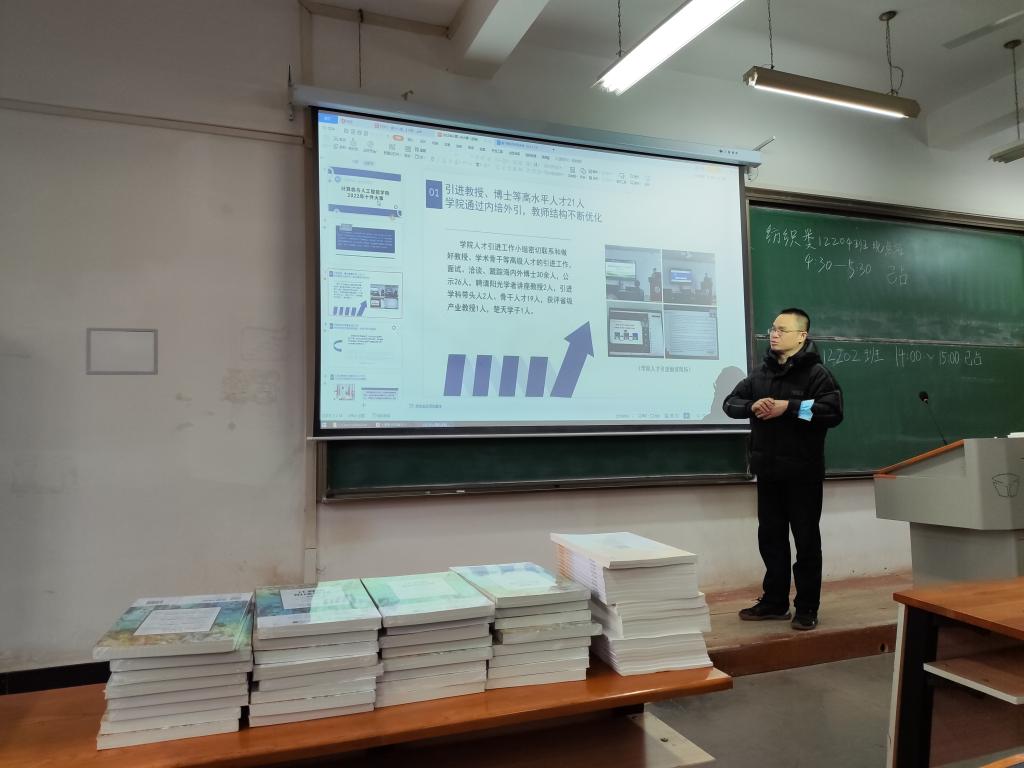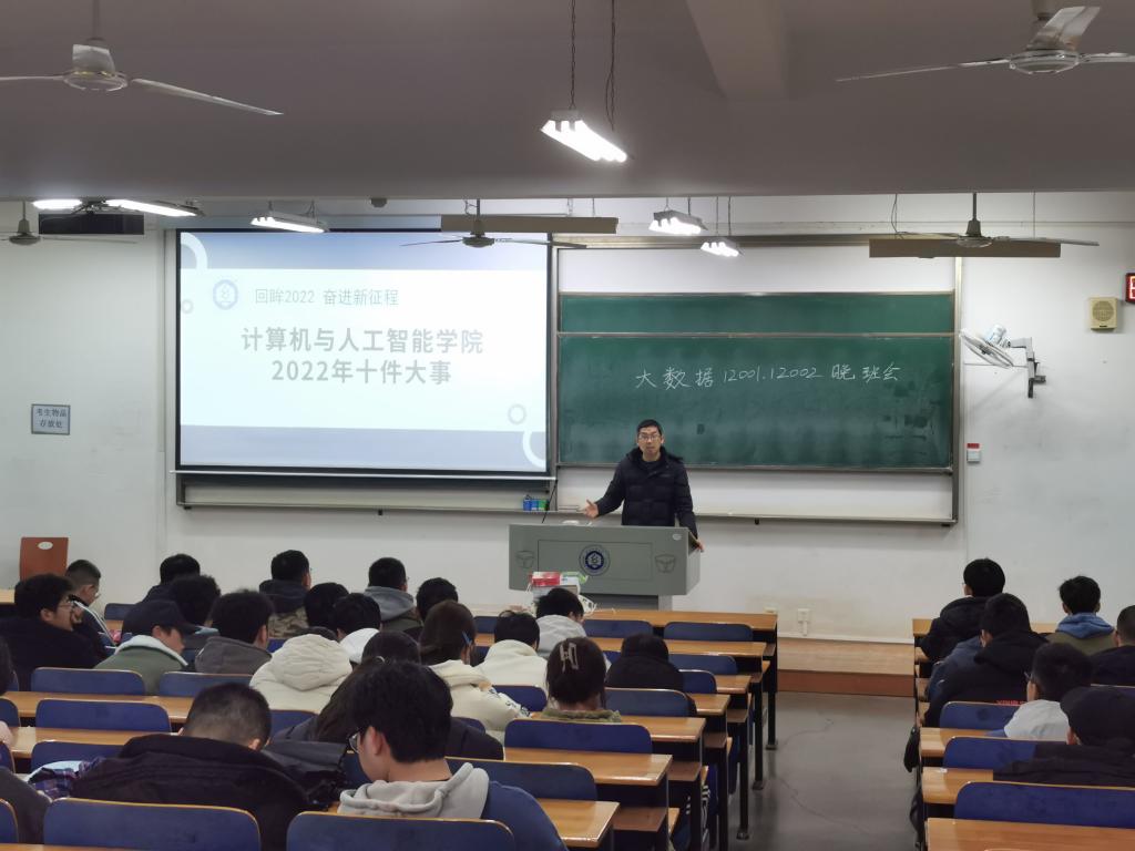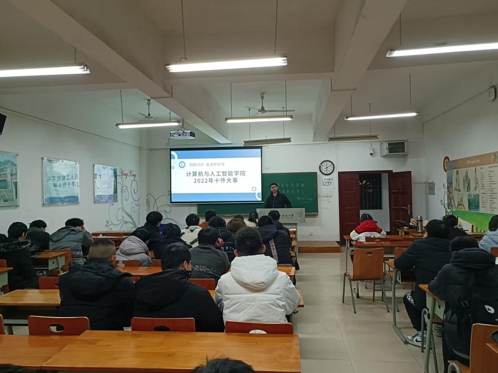 新学期的第一次班会既是“收心会”,也是正式进行学习前的“预训练”。按照惯例基本都是讲安全、讲要求、分享寒假趣事、展望新学期愿景等常规内容。计算机与人工智能学院打破常规,一改以往陈旧老套的做法,以2022年度学院十件大事为载体,从中挖掘课程思政的元素,以班会活动为主渠道,将大学生思想政治教育有效融入其中,在春风化雨和循循善诱中增强学生的专业认同感、学业自信心,激发学生向上向善的精神动力。
