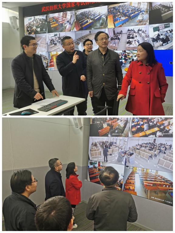 随后,学院领导参观了武汉纺织大学国家考试标准化考场指导中心,中心负责人向各位领导和老师详细讲解和演示了如何通过监控摄像,实时在现课堂实况,进而实现线上查课的技术。通过线上实时调看课堂实况,极大地节省了教学监督的时间、精力、成本,提高了教学监督的效率。