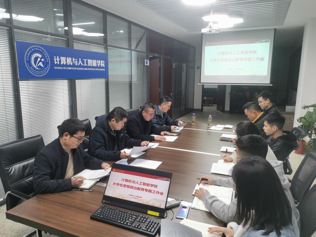 为学习贯彻学校大学生思想政治教育专题工作会会议精神,全面落实立德树人根本任务,把思想政治教育贯穿人才培养全过程,着力提升思政工作亲和力、针对性和实效性,计算机与人工智能学院于2月23日在崇真楼(南楼)A4030召开了学院大学生思想政治教育专题工作会,学院党委书记晏伟、副院长魏雄、副院长彭涛、党委副书记向涛和全体辅导员参加了会议,会议由向涛主持。