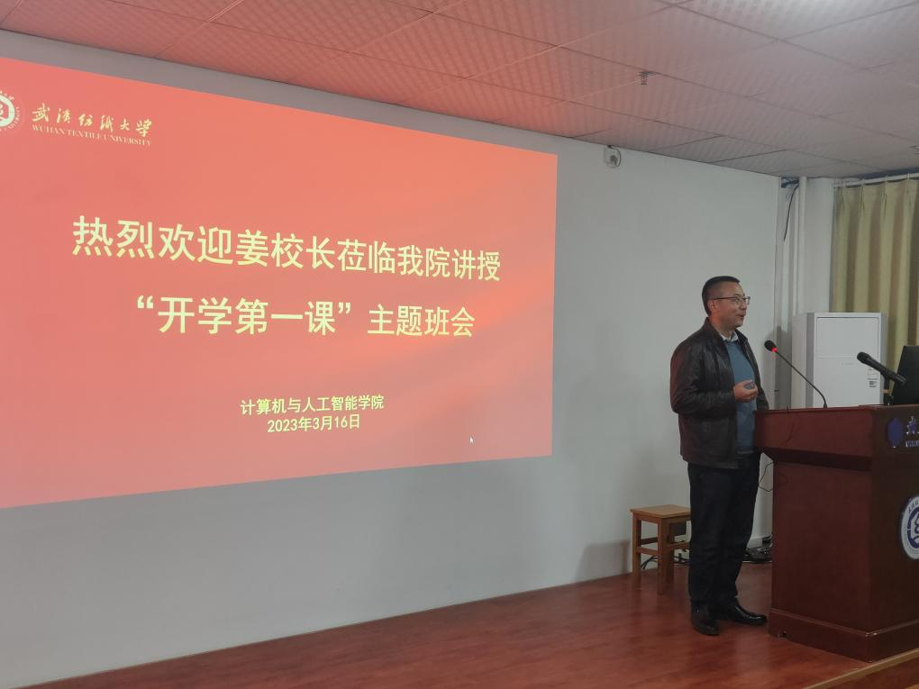 春雨轻飘,润物无声。3月16日晚上,校党委常委、副校长姜明华莅临计算机与人工智能学院,以“你好,美好纺大”为主题给学生讲授了“开学第一课”。学院党委书记晏伟、党委副书记向涛、全体辅导员以及结对党支部、班级、宿舍、困难学生等参加主题授课,活动由晏伟主持。