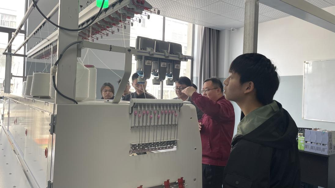 此外,宁波慈星股份有限公司组织师生在慈星学院进行了交流学习,进一步了解了针织生产设备的结构和零部件构成,加深了产品从设计到生产的全过程认识。一线成型设备是慈星研发的国内新技术,在工程师现场操作下,师生们观看了从一根纱线到一件毛衫的整个过程,了解了一线成型技术的优势和技术难点。