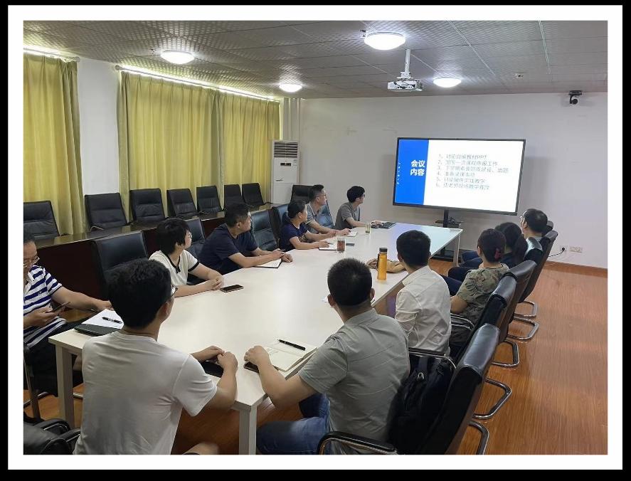 各位老师针对近期自编教材修订以及PPT完成情况进行了汇报,将进一步完善PPT质量。另外就新教材录课工作进行了任务分解和规划,确保新学期能上线使用。课程团队还就近期申报国家一流课程相关事项进行了讨论,并就相应任务进行了部署,要求暑假期间提前准备。为进一步提高学生培养质量,课程团队老师就2022级C语言教学过程中存在的问题进行了讨论并提出相应的改进措施,将在2023级新生教学中引入硬件实践教学环节,加强学生动手能和学习兴趣。最后,课程团队举行了现场教学,由唐贤方老师主讲。与会的老师就教学仪态、课程导入、内容安排、教学技巧等方面进行了交流。