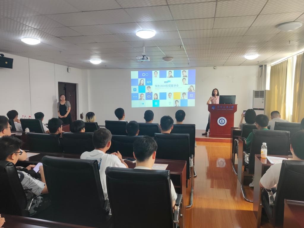 随后,恒生电子股份有限公司人力资源部孟媛经理为同学们介绍了公司的具体情况和详细的岗位需求信息,并从用人单位角度,结合工作岗位和职业提升,给同学进行了全面的分析和指导。