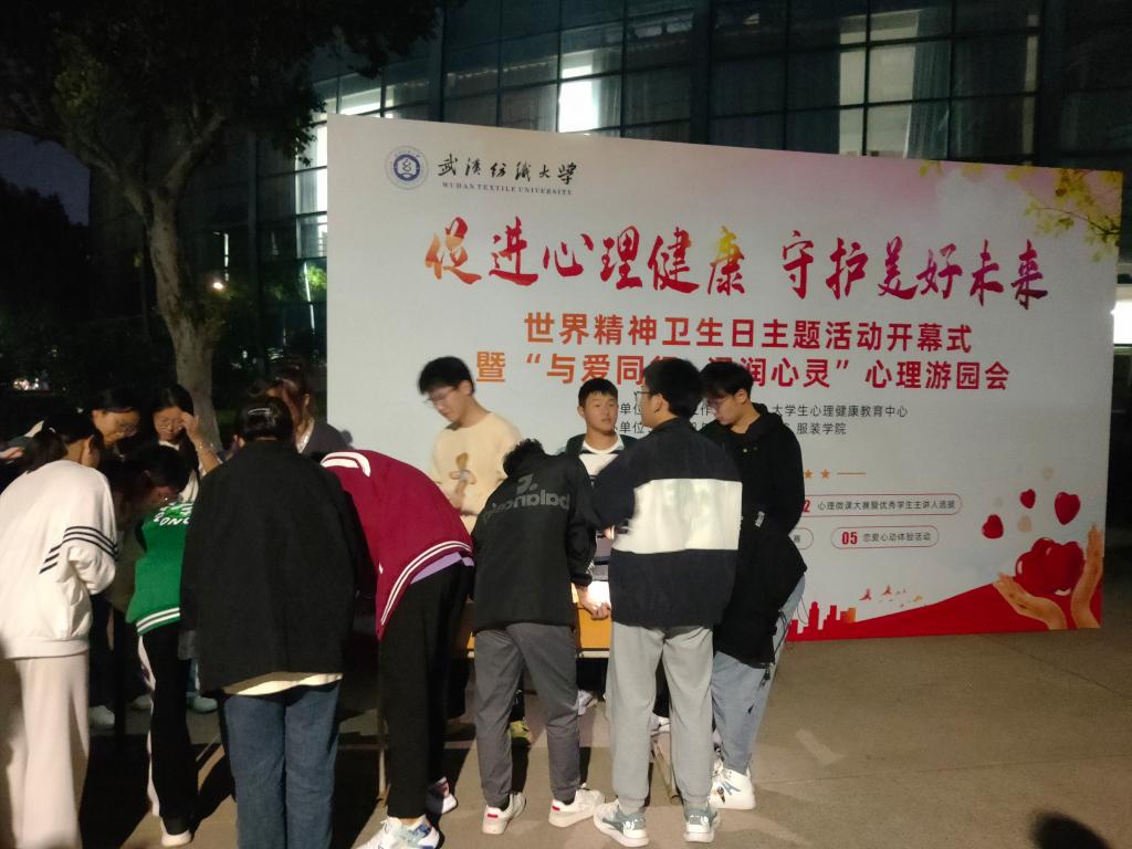 为了丰富同学们的文化生活,缓解学习压力,营造轻松舒适的校园氛围,由武汉纺织大学学生工作部、大学生心理健康教育中心主办,计算机与人工智能学院、服装学院承办的“与爱同行、浸润心灵”心理游园会于10月13日晚在阳光校区大学生活动中心开幕。学工部副部长夏贤辉,大学生心理健康教育中心主任江秋玮、大学生心理健康教育中心张万里老师,计算机与人工智能学院党委副书记向涛,计算机与人工智能学院全体辅导员,各学院参赛队员共同参加开幕式。