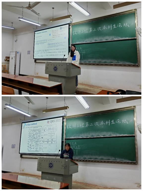 为了不断拓展本科生的专业视野,了解智能化软件工程时代的前沿知识,计算机与人工智能学院软件工程系于11月13日下午,在03-119教室举办了第二次本科生论坛。本次论坛以“人工智能赋能的软件工程”为主题,邀请了软件工程专业2021级蓝欣仪、崔梦瑶两位同学分享了最新研究成果和学习经验,软件工程专业全体2022级学生参加了本次论坛。论坛由软件工程系专任教师王帮超主持,软件工程系主任叶鹏出席了本次论坛。