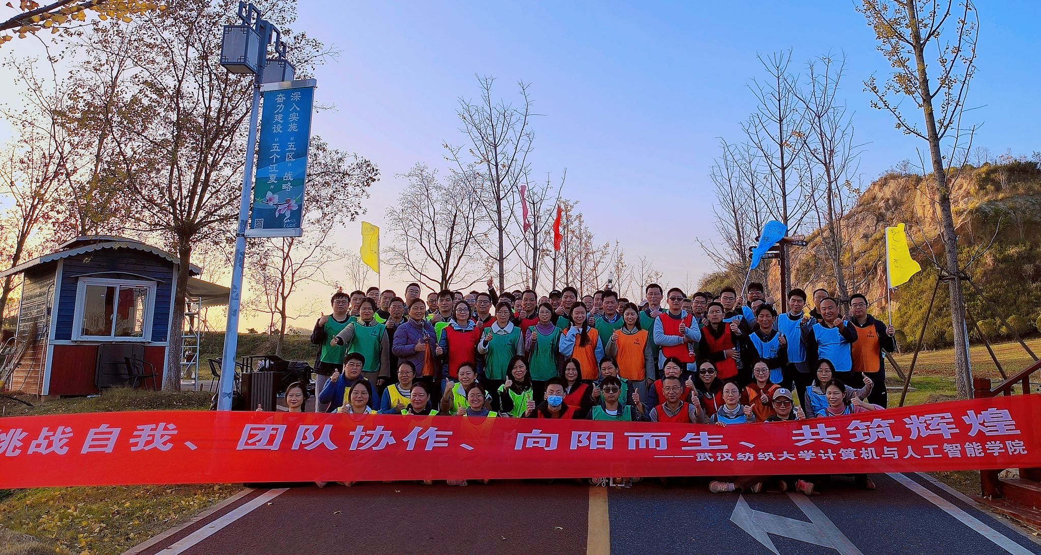 为增强学院凝聚力,构建和谐美好学院。11月23日,计算机与人工智能学院党委暨工会组织全体教职工前往江夏区灵山矿质公园,开展了“挑战自我、团队协作、向阳而生、共铸辉煌”的冬季户外团建活动。